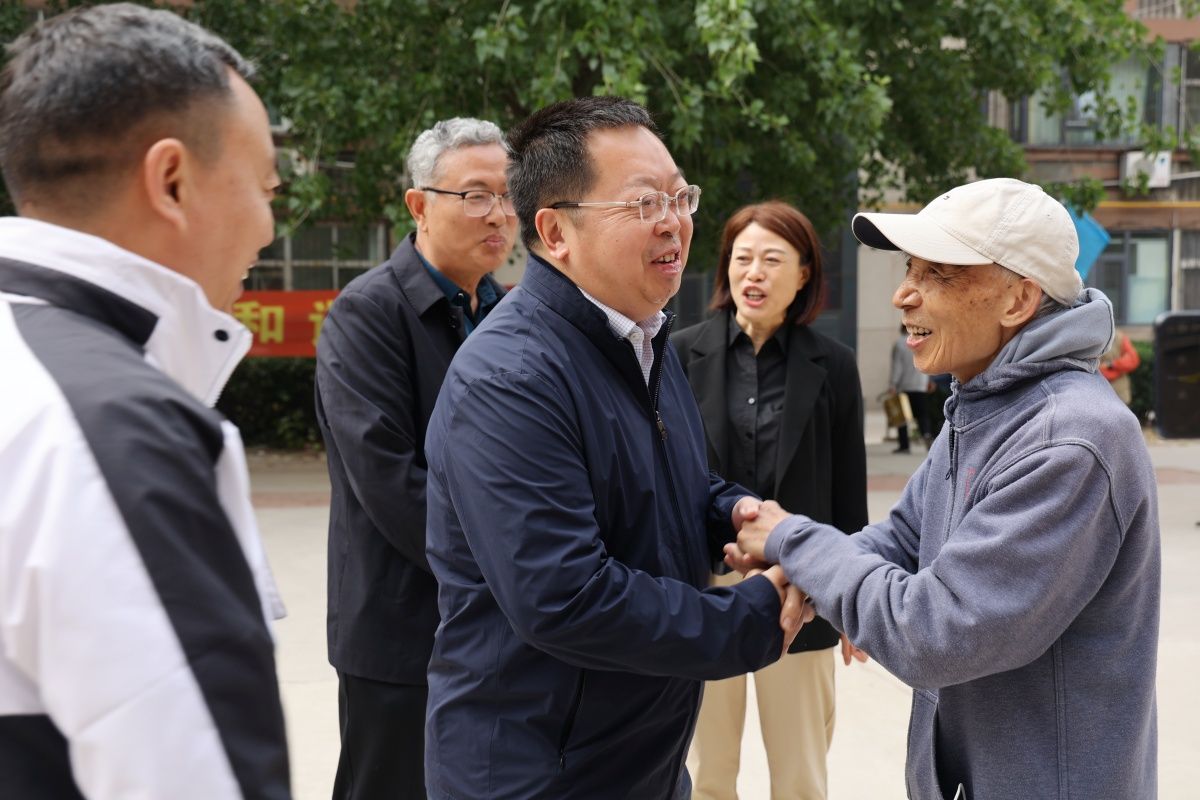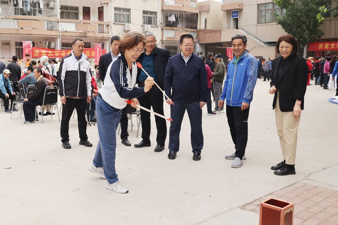 4月29日上午,学校离退休教职工趣味运动会在主校区和舜耕校区分别进行,500余名离退休老同志参加活动。校长刘宗明、副校长张勇来到主校区比赛现场,与参赛的老同志进行亲切交谈并为老同志加油鼓劲。
