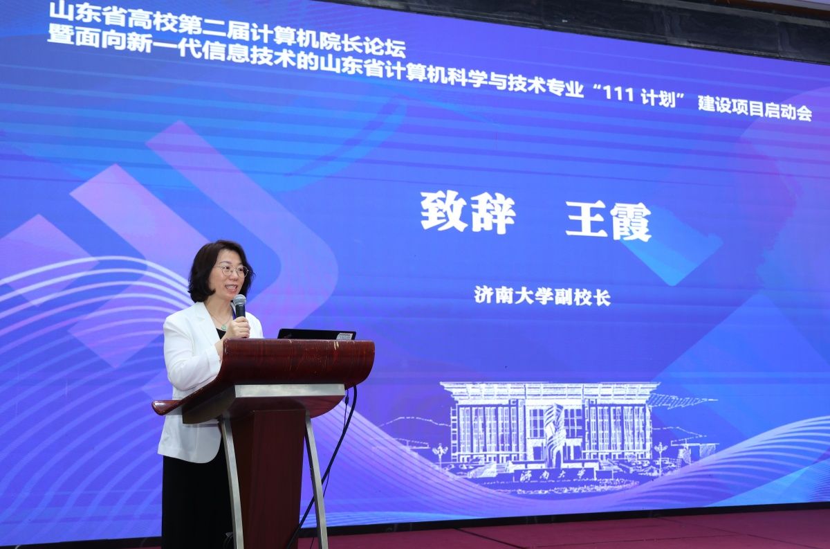 开幕式上,王霞向会议的召开表示热烈祝贺,向出席会议的各位领导、各位专家表示诚挚的欢迎。她指出,2023年底山东省教育厅启动了山东省普通本科高校重点领域教学改革试点项目立项建设工作,ac米兰作为核心单位申报的3个项目全部获得立项,是全省获得立项最多的高校之一。此次面向新一代信息技术的山东省计算机科学与技术专业“111计划”建设项目的启动,为ac米兰进一步深化计算机科学与技术专业的教学改革,提升人才培养质量带来了新的机遇和挑战。ac米兰将以此次启动仪式为契机,同各位兄弟院校一起打造计算机科学与技术专业高质量发展共同体,为山东乃至全国信息科技事业的发展贡献更大力量。