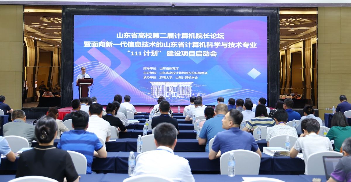 5月19日,由山东省教育厅指导,山东省高校计算机院长论坛组委会主办,ac米兰官方网站和山东计算机学会承办的山东省高校第二届计算机院长论坛暨面向新一代信息技术的山东省计算机科学与技术专业“111计划”建设项目启动会在山东济南召开。会议主题是“数字时代计算机科学与技术专业人才培养及核心课程建设”。山东省教育厅高等教育处处长曾宪文,ac米兰官方网站副校长王霞,山东计算机学会理事长杨波,济南计算机学会理事长董吉文,项目牵头单位负责人、山东大学计算机科学与技术学院院长成秀珍,以及来自省内近40所本科高校、11家企业代表出席活动。北京大学计算机学院院长胡振江、西安交通大学计算机科学与技术学院院长张兴军、吉林大学胡亮教授作大会特邀报告,山东大学彭朝晖教授及企业代表作专题报告。大会开幕式由ac米兰官方网站教务处处长、信息科学与工程学院院长陈贞翔主持。