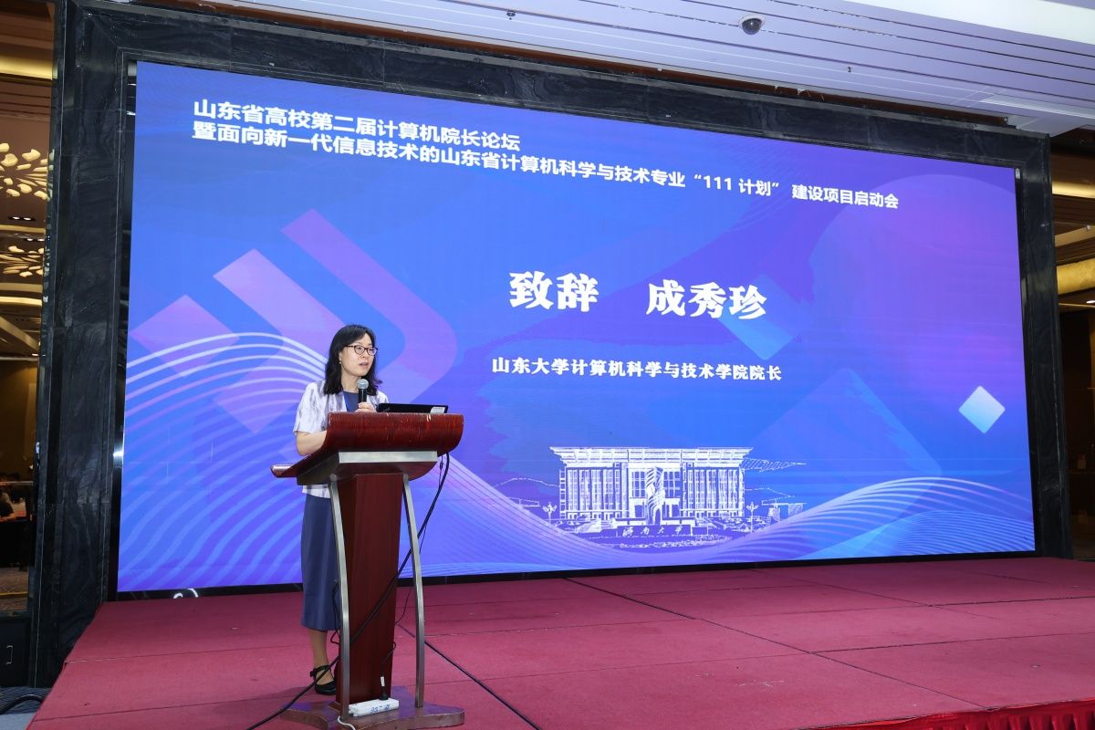 成秀珍在致辞中表示,山东大学将充分发挥自身学科优势和科研实力,通过加强学科交叉与融合,推动人才培养和科研创新,努力打造一流的计算机科学与技术专业。在各参与单位全体师生的共同努力下,这一建设项目必将取得长足发展,为山东省乃至全国的信息技术领域发展作出积极贡献,期待与各单位携手并进,共同开创信息技术领域的新局面,为推动山东省的科技创新和经济转型升级贡献更大力量。