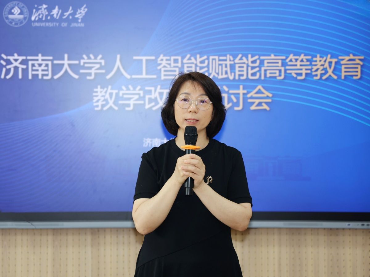 王霞在讲话中指出,面对数字化发展大势,学校加快推进人工智能等数字技术与教育深度融合,出台了《ac米兰官方网站本科数字教育行动方案》,承办了山东省人工智能赋能高等教育教学改革发展研讨会,举办了校内系列学术交流和培训活动等。她强调,老师们要积极将人工智能技术新优势转化为教学改革发展的新动能,适应人工智能时代人才培养的新需求。
