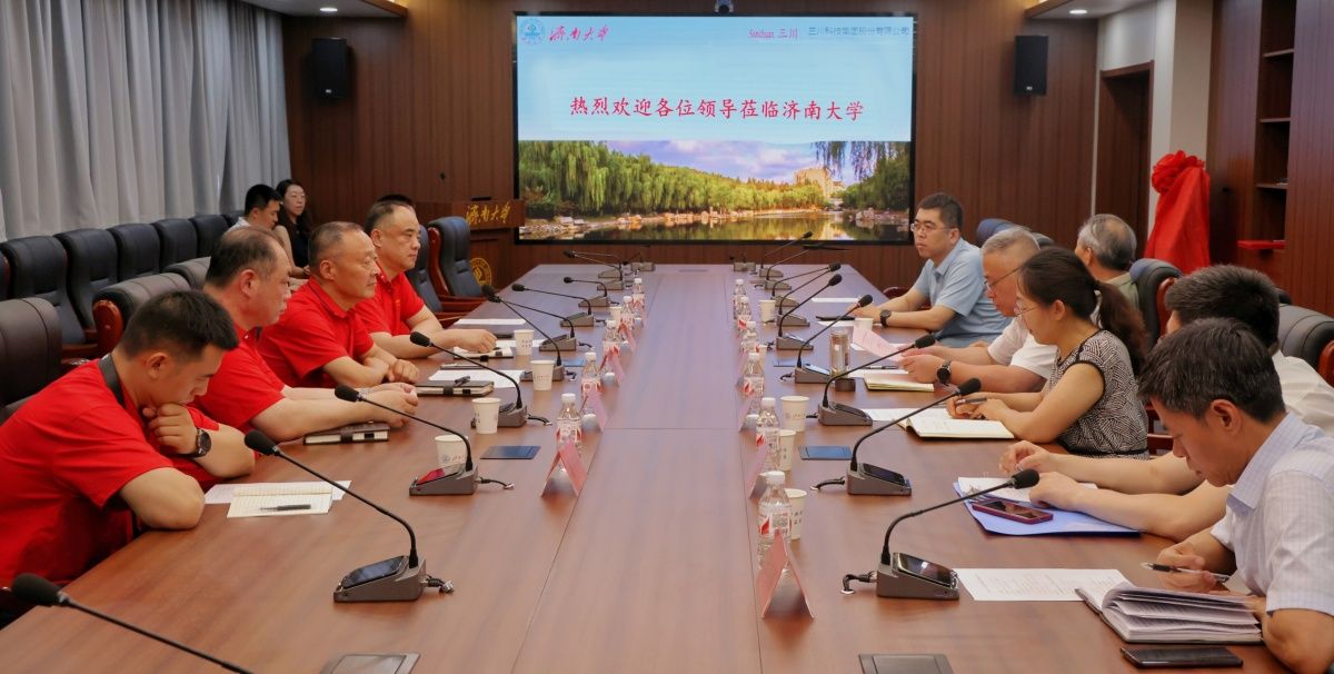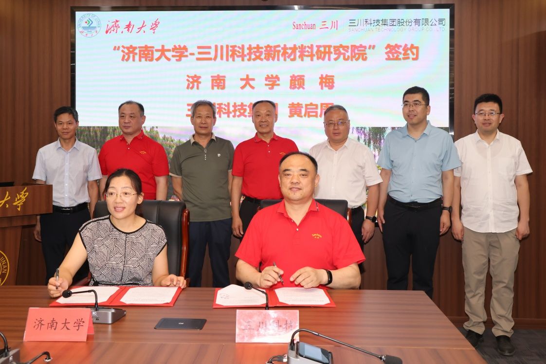 6月12日,ac米兰官方网站与三川科技集团股份有限公司共建“ac米兰官方网站——三川科技新材料研究院”(以下简称研究院)签约暨揭牌仪式在ac米兰官方网站举行。三川科技集团股份有限公司董事长桑桂川、副总经理黄启周及相关人员参加活动,学校党委常委、副校长黄加栋出席会议,学校科技处、科技成果转化办公室、材料科学与工程学院等负责同志和专家教授参加签约暨揭牌仪式。仪式由科技处处长颜梅主持。