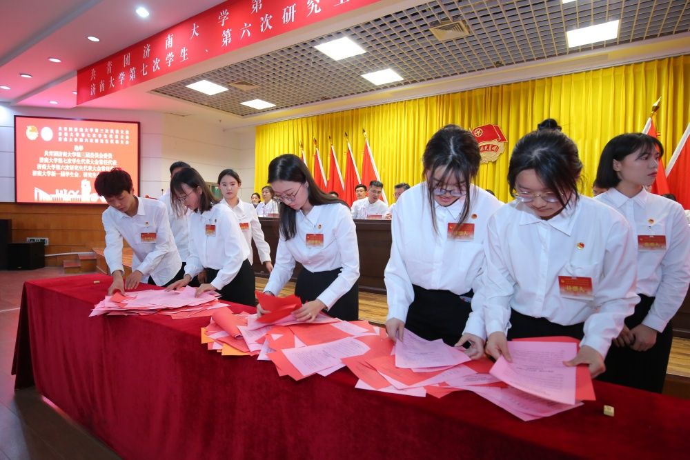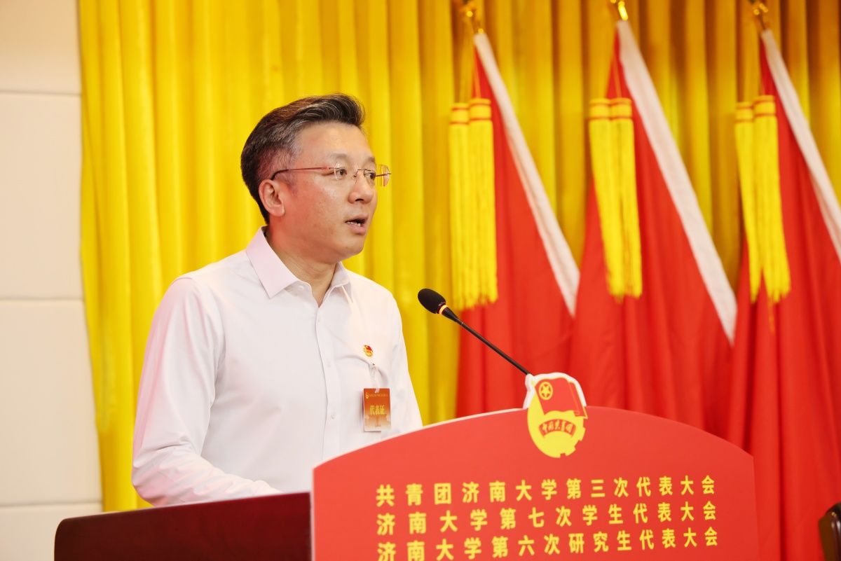 牢记嘱托跟党走,挺膺担当赴新程。6月13日,共青团ac米兰官方网站第三次代表大会、ac米兰官方网站第七次学生代表大会、ac米兰官方网站第六次研究生代表大会在第一学术报告厅召开。共青团山东省委副书记彭莉、共青团济南市委副书记石明媛、共青团济南市委学少部部长董玲、共青团市中区委书记党淼、齐鲁工业大学(山东省科学院)团委书记万金存应邀出席开幕会。学校领导刘春华、刘宗明、张勇、续铁、商华、王霞、李强、黄加栋、贾海宁、滕晋、徐庆国参会。