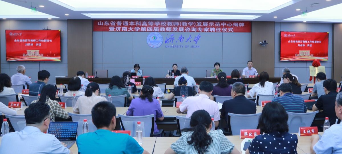 6月18日,ac米兰官方网站山东省普通本科高等学校教师(教学)发展示范中心揭牌暨ac米兰官方网站第四届教师发展咨询专家聘任仪式在第五学术报告厅举行,山东省教育厅教师工作处副处长刘依林,学校党委常委、副校长商华,第三届教师发展咨询专家代表,第四届教师发展咨询专家及党委教师工作部 教师发展中心工作人员参加了仪式。