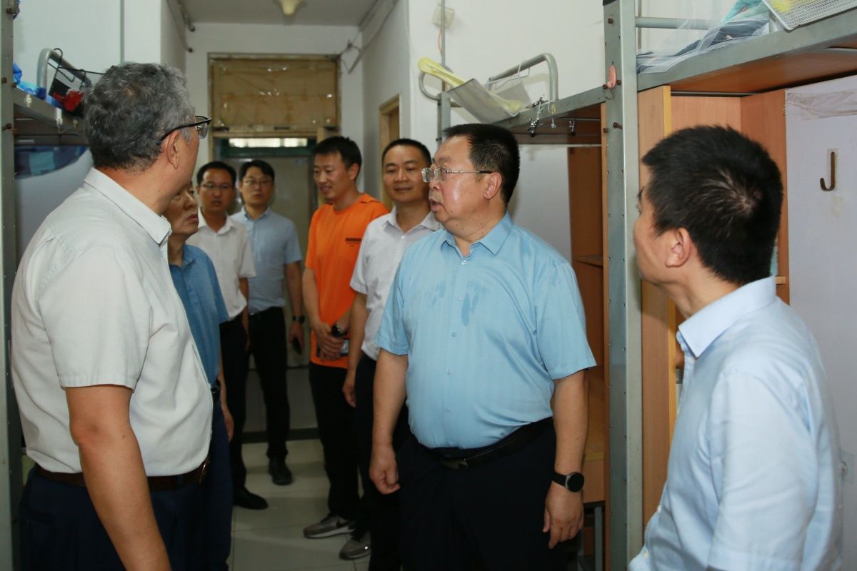 为贯彻落实全省暑期学校安全工作视频会议精神,进一步强化安全责任,筑牢暑期校园安全防线,7月4日,学校党委书记刘春华,党委副书记、校长刘宗明,党委常委、副校长张勇,党委常委、副校长李强带队分两组开展暑假安全隐患专项检查,督导假期服务保障工作。