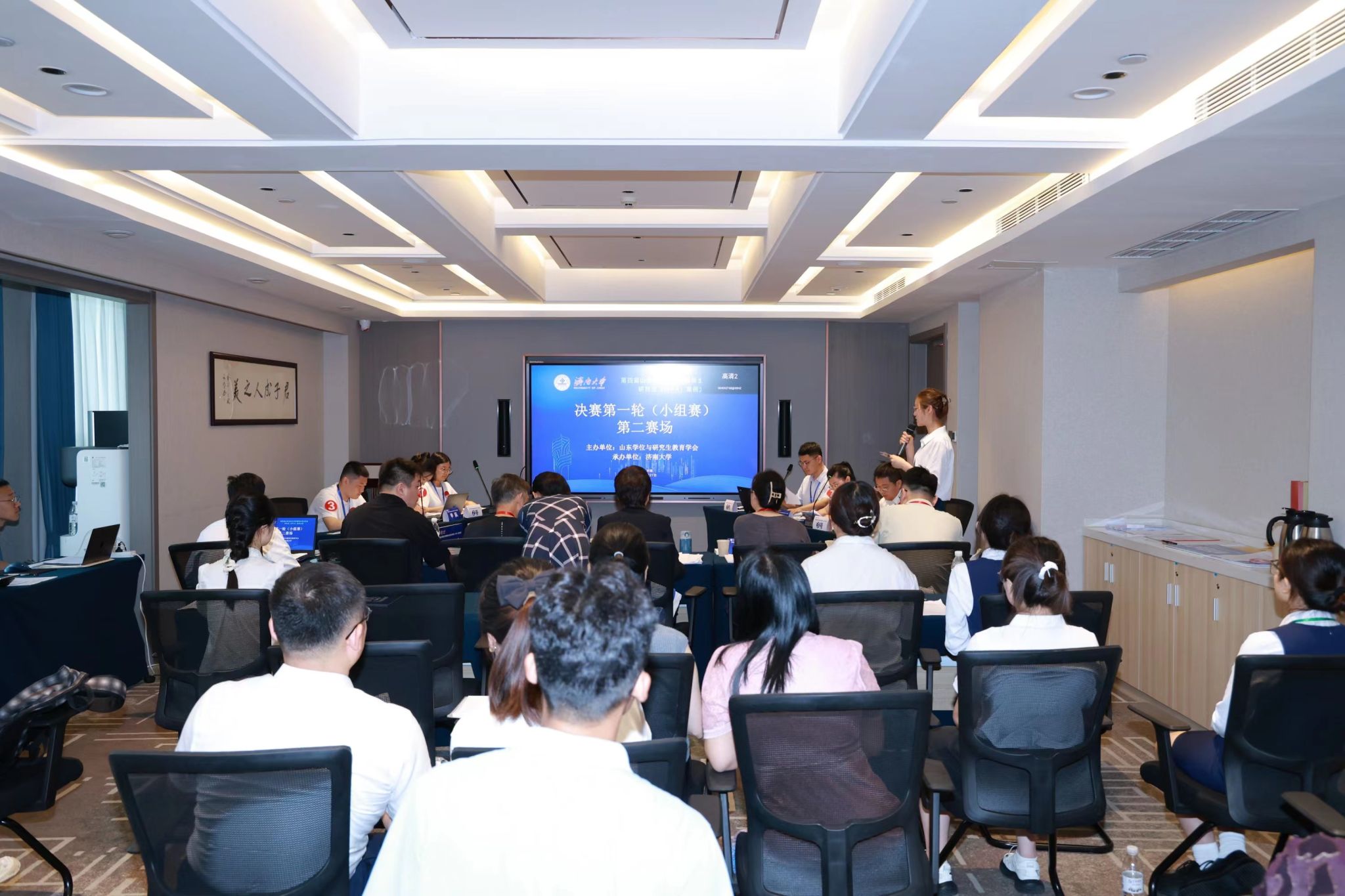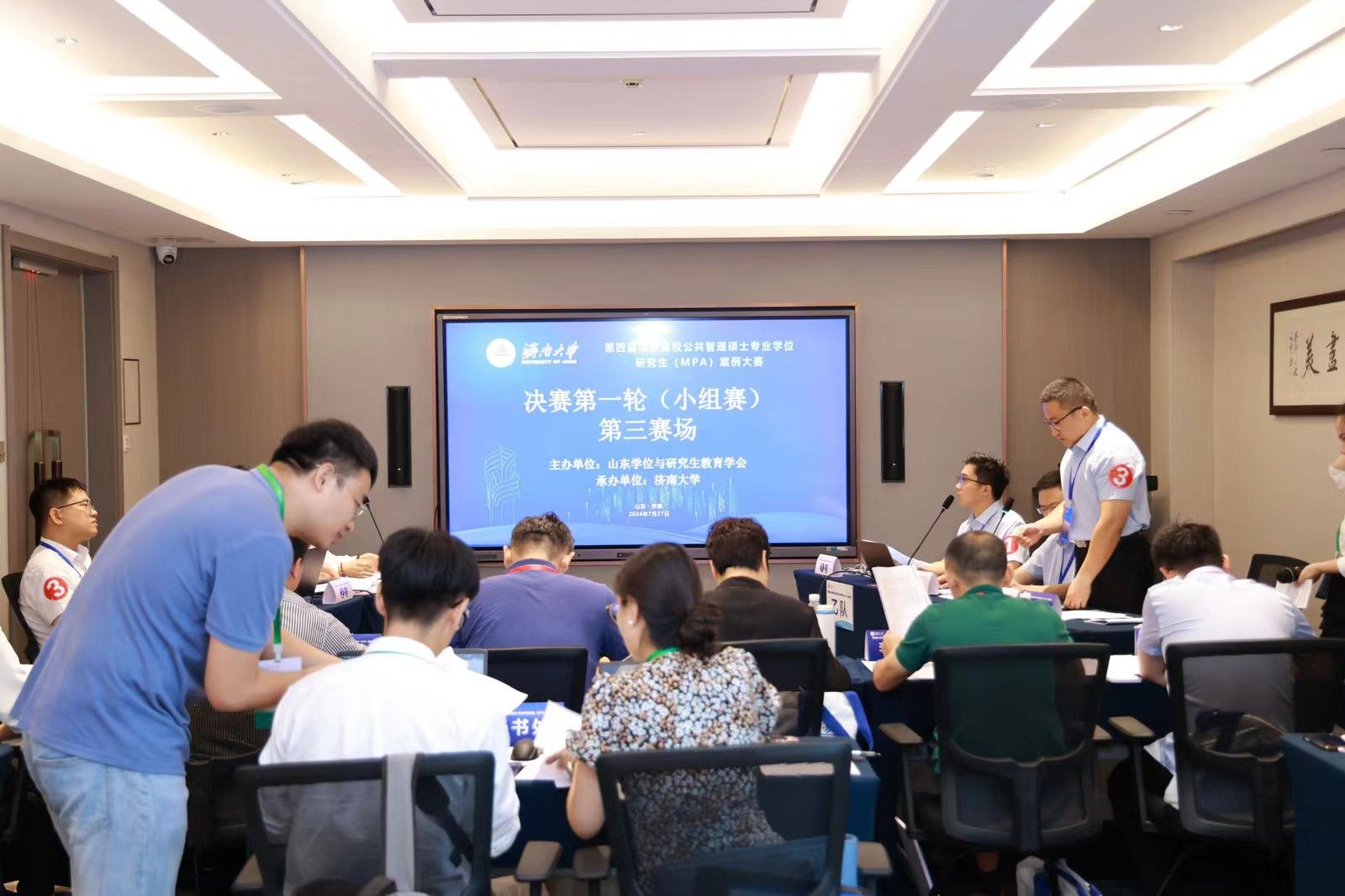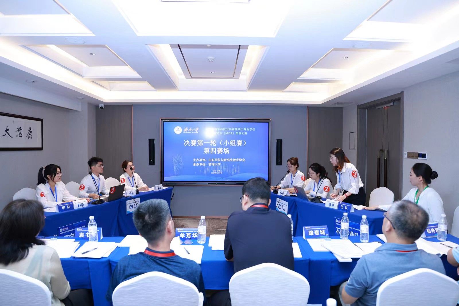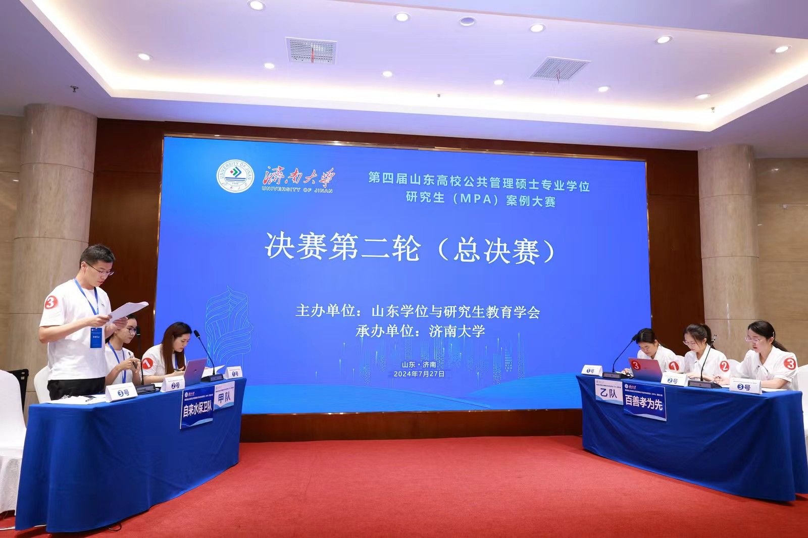 决赛分为小组赛和总决赛两个环节。7月27日上午为小组赛,分为四个赛场同时进行。24支参赛队伍通过抽签确定赛场和对手,每个赛场6支队伍、两两对决。比赛双方现场展示案例正文及分析报告,并进行自由辩论、总结陈述。评委根据每支队伍的案例采编及分析质量、专业水平和比赛表现进行现场评分。经过一上午的激烈比赛,来自山东大学、山东师范大学、曲阜师范大学和ac米兰官方网站的4支队伍进入大赛总决赛,共同角逐特等奖和一等奖。