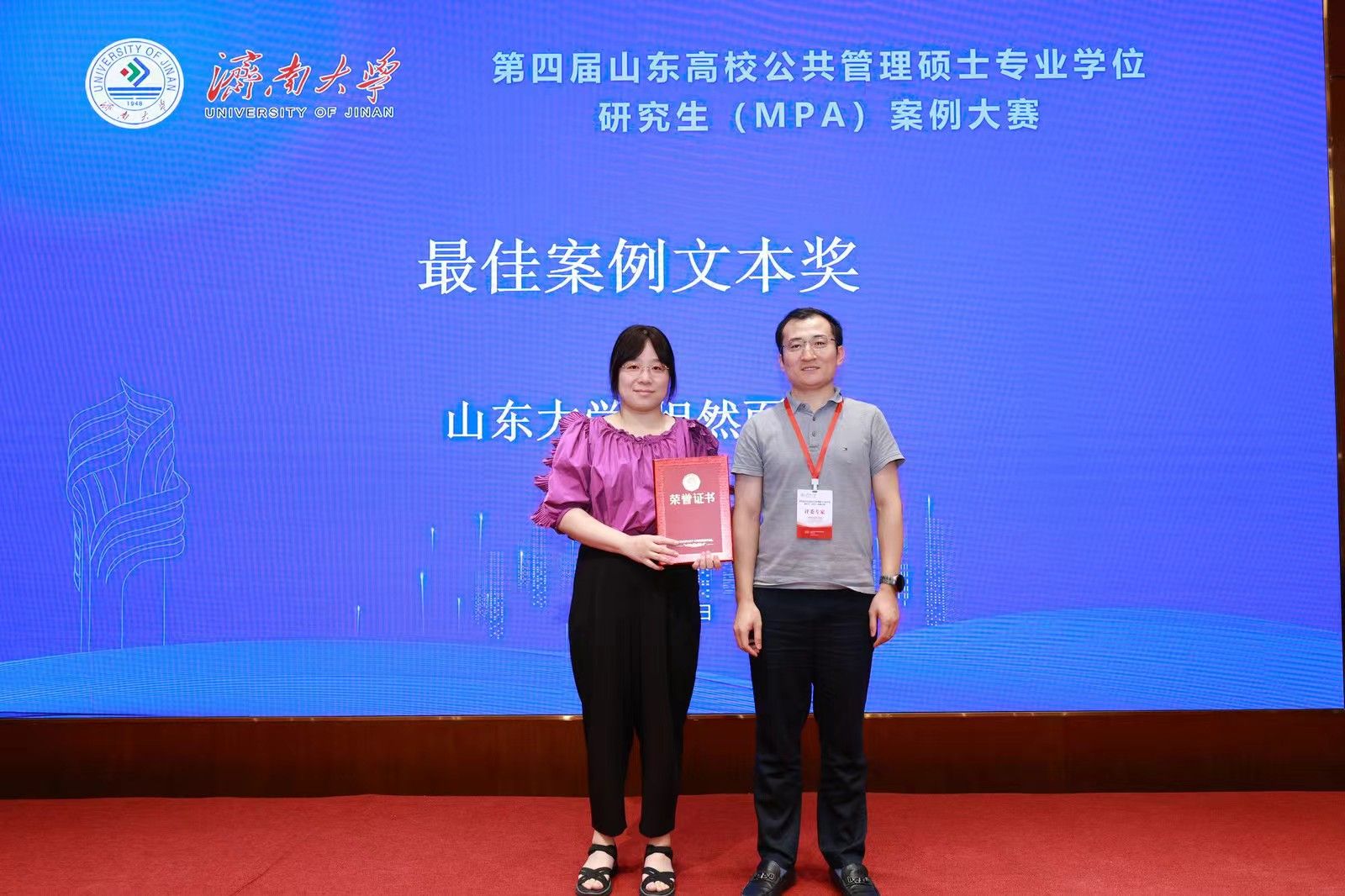 本届山东高校公共管理硕士专业学位研究生(MPA)案例大赛共评选出特等奖1名、一等奖3名、二等奖4名、三等奖8名、优秀奖8名,最佳指导教师奖1名、最佳文本奖1个、最有价值队员奖2名、优秀组织奖1个。ac米兰共有9支队伍参加本届案例大赛,其中2支队伍入围决赛并取得了优异成绩。宁有才老师指导的“百善孝为先队”荣获一等奖,魏志荣老师指导的“铁道游击队”荣获三等奖,取得了历史性突破。