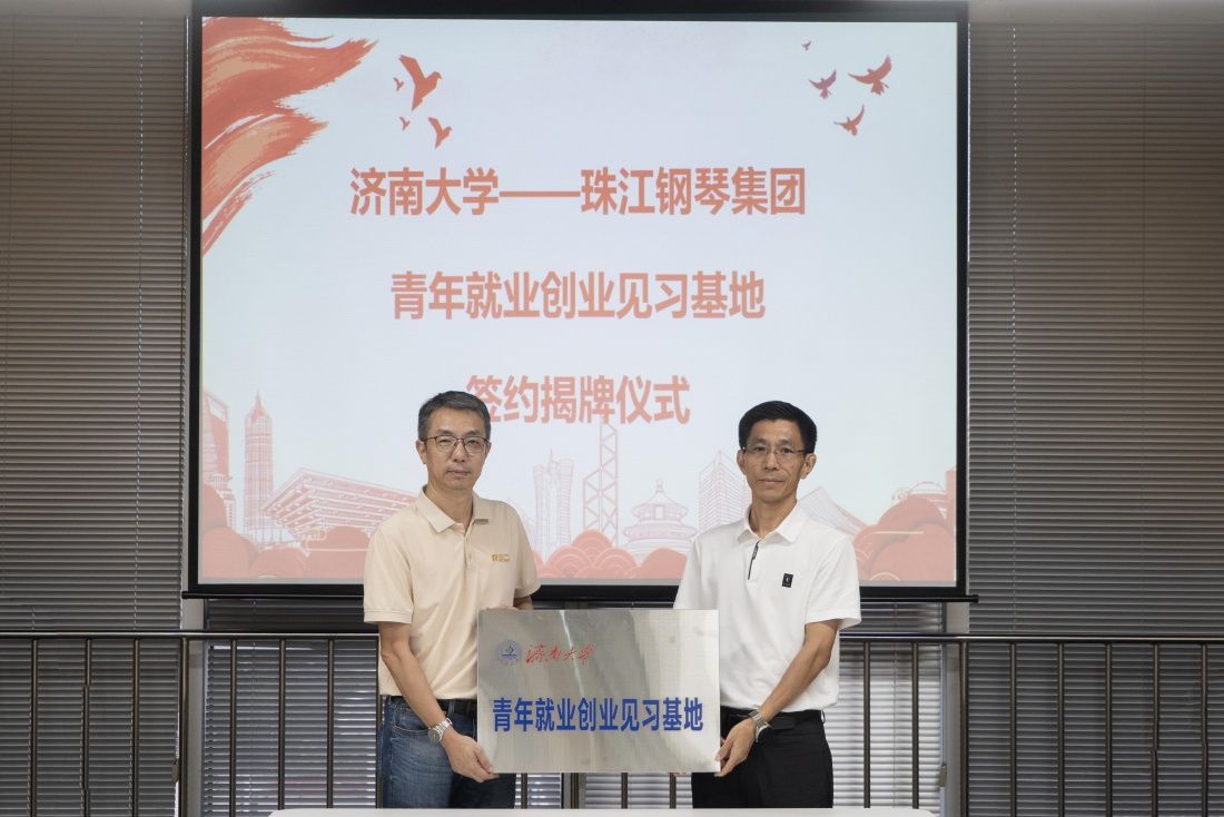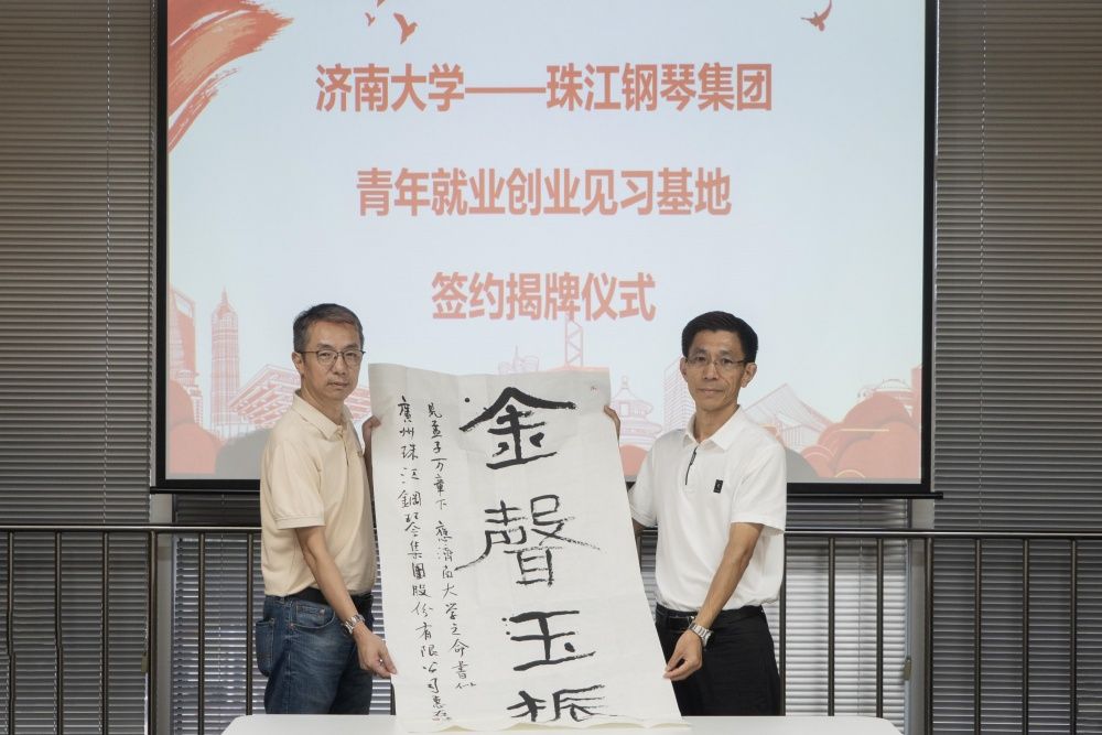 座谈会上,李强与肖巍总经理共同为ac米兰官方网站青年就业创业见习基地揭牌。音乐学院党委书记孙翔玲与珠江钢琴集团组织人事部部长王铁明签署《ac米兰官方网站青年就业创业见习基地》协议。学校向珠江钢琴集团赠送山东省书协副主席、ac米兰官方网站于剑波老师的书法作品。