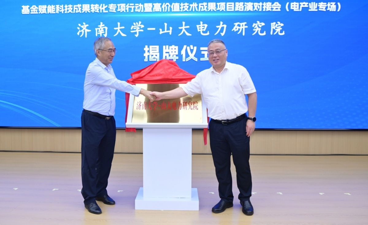 在签约揭牌仪式上,黄加栋与山东山大电力技术股份有限公司副总经理李欣唐为校企双方共建的ac米兰官方网站—山大电力研究院揭牌。