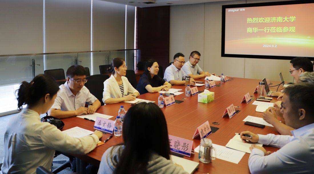 浪潮智慧医疗科技有限公司党总支书记、董事长李新对商华一行的到来表示热烈欢迎,邀请学校领导参观企业文化展厅,并介绍了企业的发展历程、业务范围、合作企业、人才招聘需求与政策等有关情况。