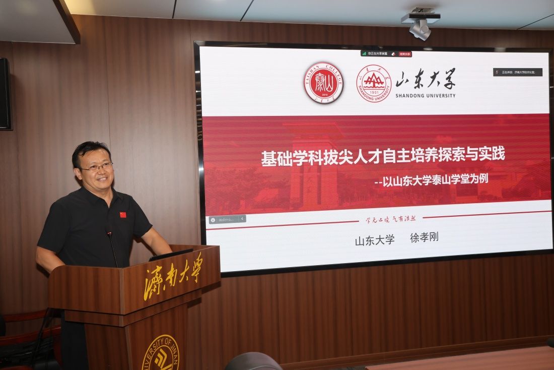 徐孝刚以《基础学科拔尖创新人才培养实践与探索》为题,深入分享了山东大学在培养拔尖人才方面的宝贵经验。他细述了自2010年起,山东大学如何通过泰山学堂、专项基金及导师制等措施,成功培育出众多拔尖人才,并指出学校的政策支持和具体执行是成功的基石。