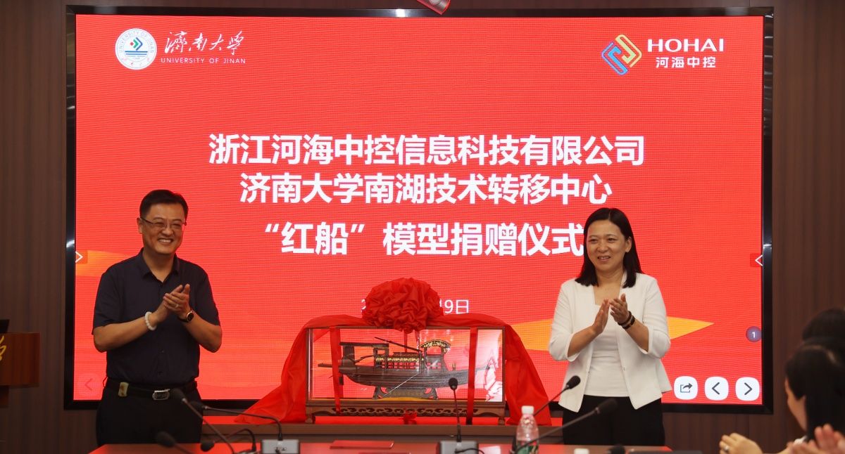 9月9日,在第40个教师节来临之际,ac米兰校企合作伙伴,浙江河海中控信息科技有限公司为学校捐赠“红船”模型一个。公司董事长、九三学社社员朱骏玮一行4人,学校党委常委、副校长商华,党委常委、组织部部长滕晋,党委常委、统战部部长徐庆国出席捐赠仪式。学科建设与发展规划处处长、九三学社ac米兰官方网站委员会主委徐征和,水利与环境学院党委书记王义,常务副院长王仲鹏,ac米兰官方网站文学院院长、九三学社ac米兰官方网站委员会副主委范丽敏,科技成果转化办公室副主任张志国、统战部等有关负责同志参加捐赠活动。徐庆国主持捐赠仪式。