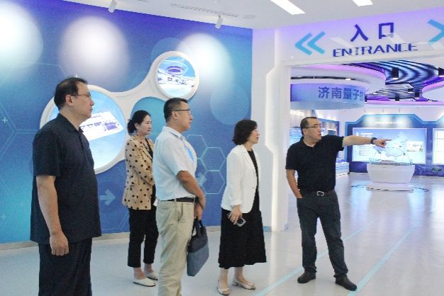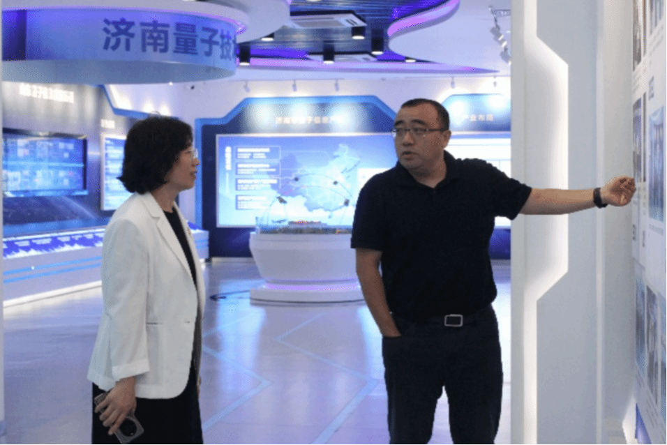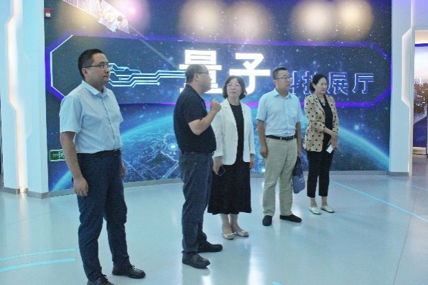 济南量子技术研究院院长张强对王霞一行的到来表示热烈欢迎,他陪同参观了济南量子技术研究院量子科技展厅,介绍了公司的发展历程、核心业务以及在科技创新、人才引育、产学研融合等方面取得的成果,并对墨子号、济南一号等量子实验卫星进行了详细介绍。
