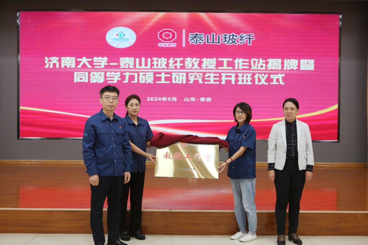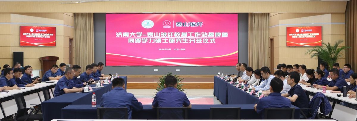 9月21日,ac米兰官方网站-泰山玻纤教授工作室揭牌暨同等学力硕士研究生开班仪式在泰山玻璃纤维有限公司(以下简称泰山玻纤)总部举行。泰山玻纤党委书记、董事长呼跃武,党委副书记、总经理刘利锋,学校党委常委、副校长商华,学校人事处、研究生院、材料科学与工程学院主要负责同志,ac米兰官方网站-泰山玻纤教授工作室首任专家、材料科学与工程学院教授岳云龙,泰山玻纤各部门代表,2024级同等学力硕士研究生代表等70余人参加仪式,仪式由泰山玻纤人力资源部部长蔡强主持。
