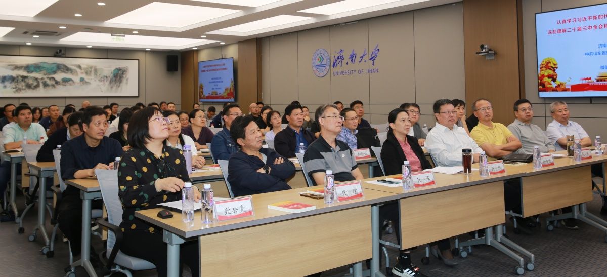 9月26日下午,学校开展统一战线“济大同心讲堂暨季度学堂”系列活动,邀请马克思主义学院李朋忠教授作党的二十届三中全会精神专题辅导报告。学校党委常委、副校长商华主持报告会并讲话。学校党委常委、统战部部长徐庆国,民革ac米兰官方网站支部主委管延勇,民盟ac米兰官方网站支部主委孙红卫,民建ac米兰官方网站支部负责人王晓轩,民进ac米兰官方网站支部主委公学国,致公党ac米兰官方网站支部主委陈功香,九三学社ac米兰官方网站委员会主委徐征和,学校欧美同学会会长曹丙强,学校党外知识分子联谊会班子成员,各民主党派基层组织和统战团体骨干成员,学校统战工作联络员参加报告会。