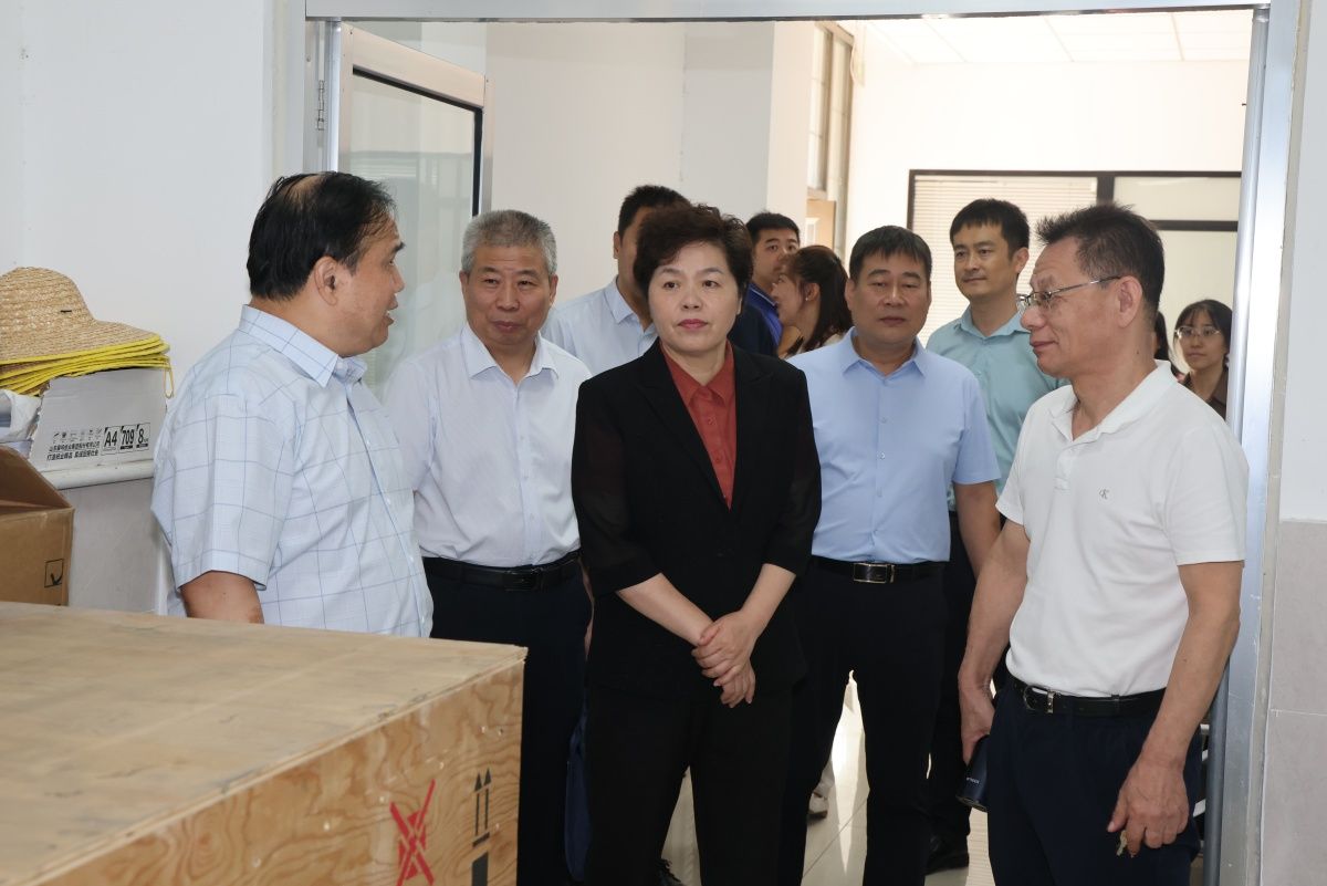 刘春华一行首先来到水利与环境学院院长胡晓农教授实验室参观考察。她充分肯定胡晓农教授在加强科研团队建设、获批国家自然科学基金重点项目等方面取得的突出成绩,勉励团队成员加强科研攻关,力争产出一流科研成果。
