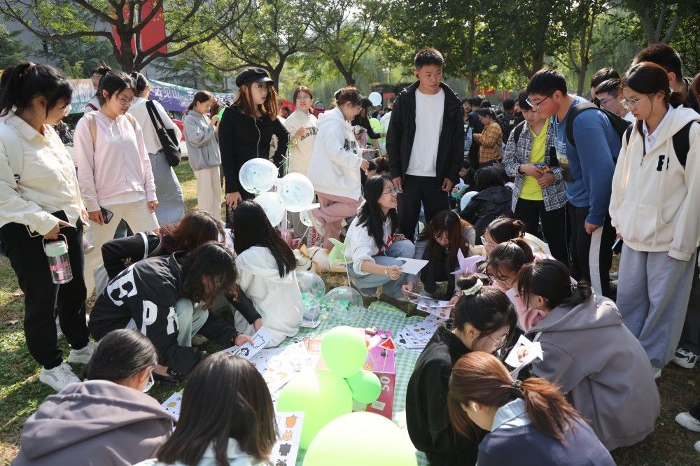 体验月以“心中有力量,自然有答案”为主题,整合校家医警社资源,以心理健康与自然环境和谐融入为设计理念,以基于正念的认知行为疗法、自然疗法和音乐疗法等为理论基础,以心理义诊、心理戏剧、音乐抒情、运动减压、阅读疗愈、朋辈辅导、主题班会、家校课堂、心理测评、个体咨询和团体辅导为活动形式,依托“滋兰苑”自然元素设置生命之树、幸福之树、能量之树三个体验区,一是“生命之树”体验区,融入“乐观成长”元素,设置“音你而来,律动未来”草地音乐区、“鼓动青春,悦动心灵”击鼓放松区和“趣享游戏,悦动身心”心理戏剧区,通过音乐观赏、击鼓体验、戏剧表演等形式帮助学生探索自我、表达自我。二是“幸福之树”体验区,融入“积极阳光”元素,设置“乐享秋日,指上添花”手工体验区和“彩绘生活,心灵涂鸦”涂鸦打卡区,通过手工制作、绘画体验、文学创作实现艺术疗愈和身心放松。三是“能量之树”体验区,融入“放松希望”元素,设置“心灵绿洲,悦享自然”正念体验区和“到自然,读一本书”草坪阅读区,邀请师生共同参与正念体验,开展草地阅读疗愈,鼓励参与者关注当下,舒缓压力。活动现场,济南市精神卫生中心心理专家和社区民警、24小时心理热线负责人进行心理义诊,学校“向上心青年”团队进行朋辈宣讲,参与师生还现场体验了心理AI智能仪等高科技设备。活动期间,学校在教学楼、学院办公区、图书馆、食堂和学生公寓等以滚动字幕、图片等方式宣传心理健康知识,学校广播站循环播放“积极心理倡议书”,共同营造全环境心理育人氛围,提高学生心理健康素养。活动月期间,学校将持续开展心理情景短剧大赛、新生适应主题班会、“心悦读”读书会、“迎迎”家长课堂、向上心青年“伴爱成长,我心飞扬”心理沙龙等心理健康教育活动,持续压实四级心理健康工作网络。