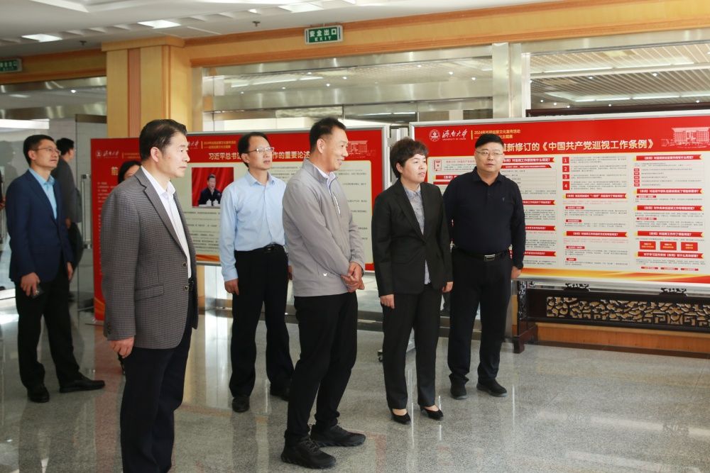 党委书记、巡察工作领导小组组长刘春华、省委巡视办领导和与会全体同志一同观看“2024年巡视巡察文化主题展”。巡视巡察文化主题展以展板形式布展,包含前言、习近平总书记关于巡视工作的重要论述、巡视工作条例解读、中国共产党巡视工作历程、十二届山东省委巡视工作、学校四届党委巡察工作、古代巡视制度沿革、后记等八部分内容。内容丰富,总结提炼精准,对了解和理解巡视巡察文化有很大帮助,主题展得到学校领导和省委巡视办领导的充分肯定。