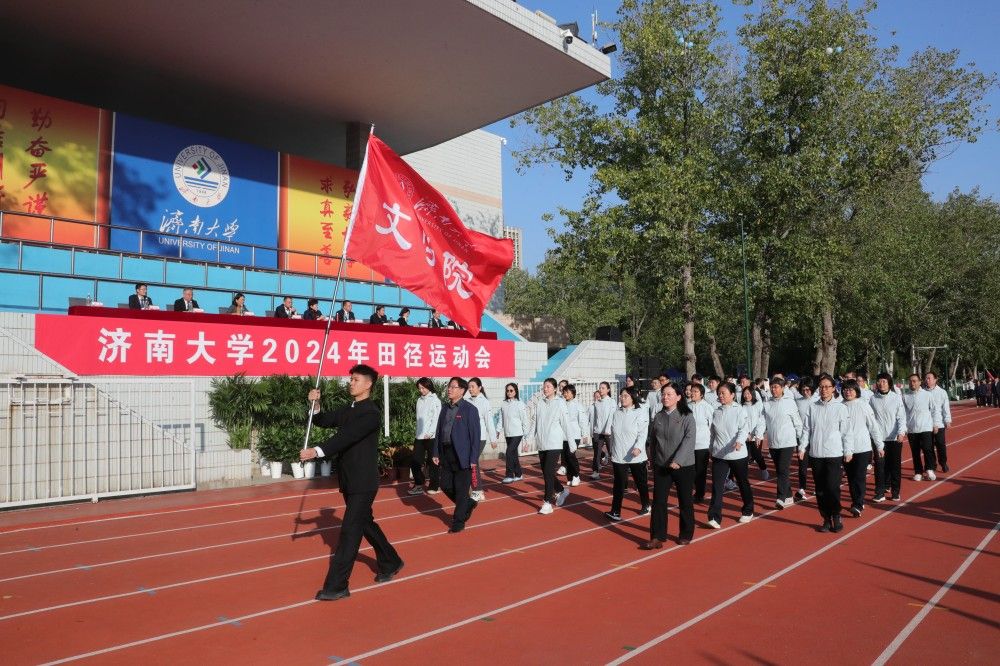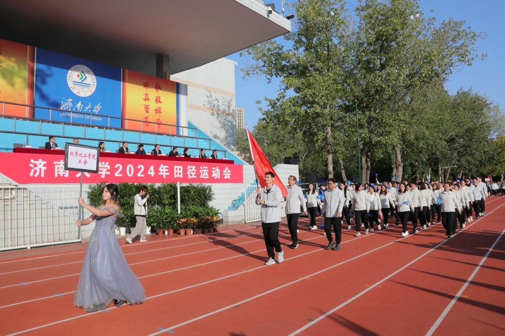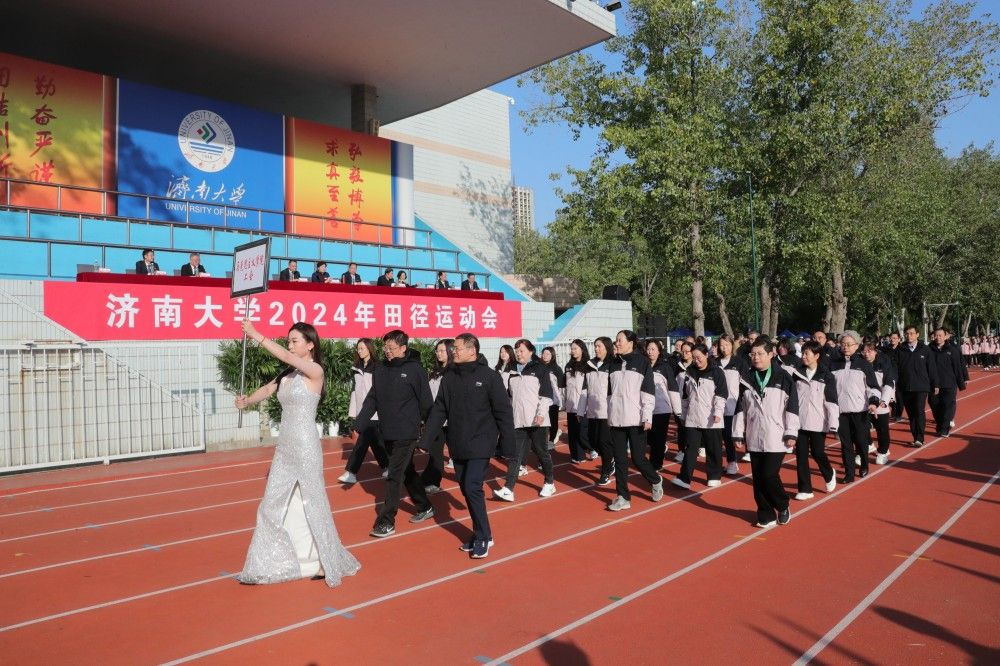 8时,伴随着豪迈的运动员进行曲,各代表队入场。他们迈着整齐的步伐,以昂扬的精神风貌依次通过主席台,展现了济大师生奋进向上的风采。