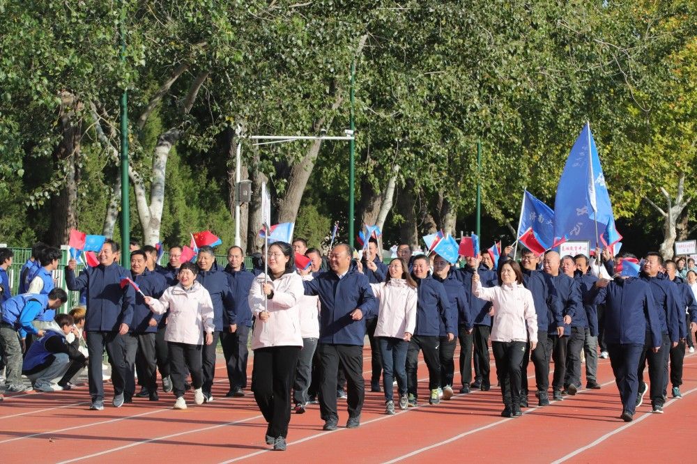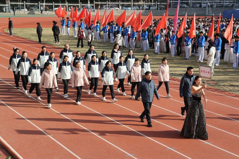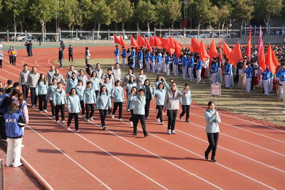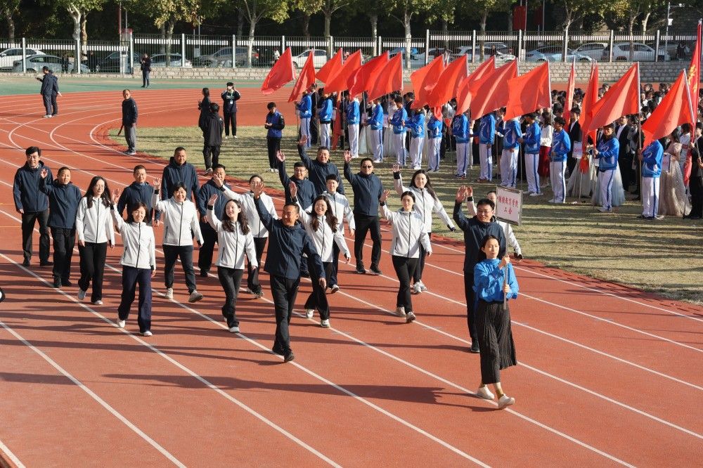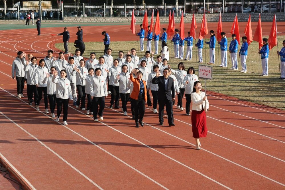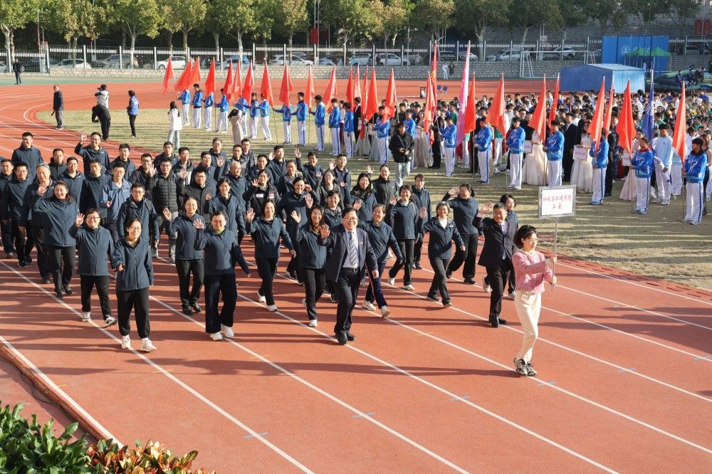 校长刘宗明致开幕词。刘宗明表示,长期以来,学校认真贯彻落实习近平总书记关于教育、体育的重要论述和全国教育大会精神,坚持“健康第一”的教育理念,深化体教融合,全面提升师生体育素养,体育运动工作呈现新气象。体育教学质量显著增强,扎实推进《全面加强和改进新时代体育工作实施方案》落实,深化公共体育教育教学改革,构建“健康知识+基本运动技能+专项运动技能”体系,实行学生体质健康测试全过程监测;体育设施建设提质升级,立项建设主校区风雨操场,整修主校区运动场,完善学生公寓周边体育设施,改造老干部活动广场周边环境,新建紫荆路700米健身步道;体育竞技水平持续提升,在山东省第十七届大学生运动会、山东省大学生乒乓球锦标赛等比赛中获冠军13项、亚军5项;群众性体育运动热情更加高涨,开展庆祝新中国成立75周年“跑步去北京”线上打卡活动,举办篮球、排球、羽毛球等体育赛事,累计参与师生两万两千余人次,获全省职工乒乓球混合团体金牌等荣誉,营造了浓厚热烈的校园体育氛围。