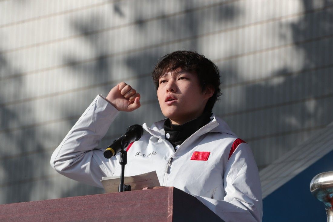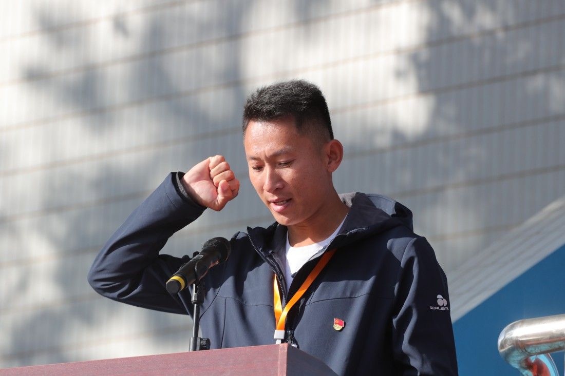 李朋和陈一诺分别代表裁判员和运动员宣誓。