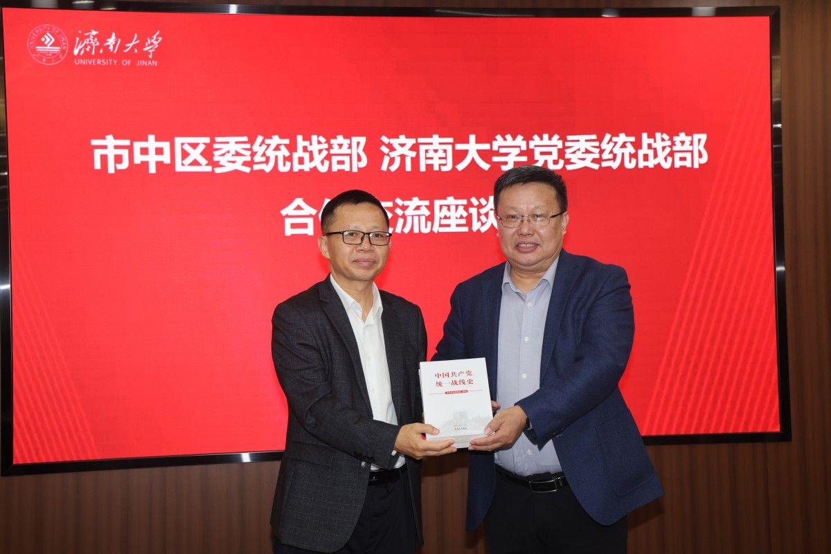 市中区委统战部向学校党委统战部捐赠统战书籍,双方签署了校地合作共建协议。