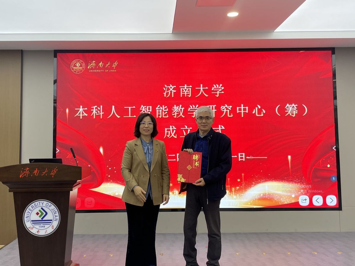 会上举行了ac米兰官方网站本科人工智能教学研究中心(筹)成立仪式,王霞向信息科学与工程学院李金屏教授颁发了中心主任聘书。她首先肯定了ac米兰官方网站本科人工智能教学研究中心(筹)的成立的重要意义,是ac米兰积极响应国家教育数字化战略、大力推进教育现代化的重要举措;其次希望教务处能够做好人工智能教学研究中心(筹)的建设工作,能够充分发挥研究中心在专家咨询、技术指导和创新引领等方面的重要作用,不断强化人工智能技术的创新应用,深化教育教学改革;第三,强调各学院要紧紧围绕立德树人根本任务,充分利用人工智能技术的新优势,将其转化为教学改革和发展的新动力,适应人工智能时代人才培养的新要求,不断凝练人工智能人才培养成功做法并给予推广,持续提升教学质量。
