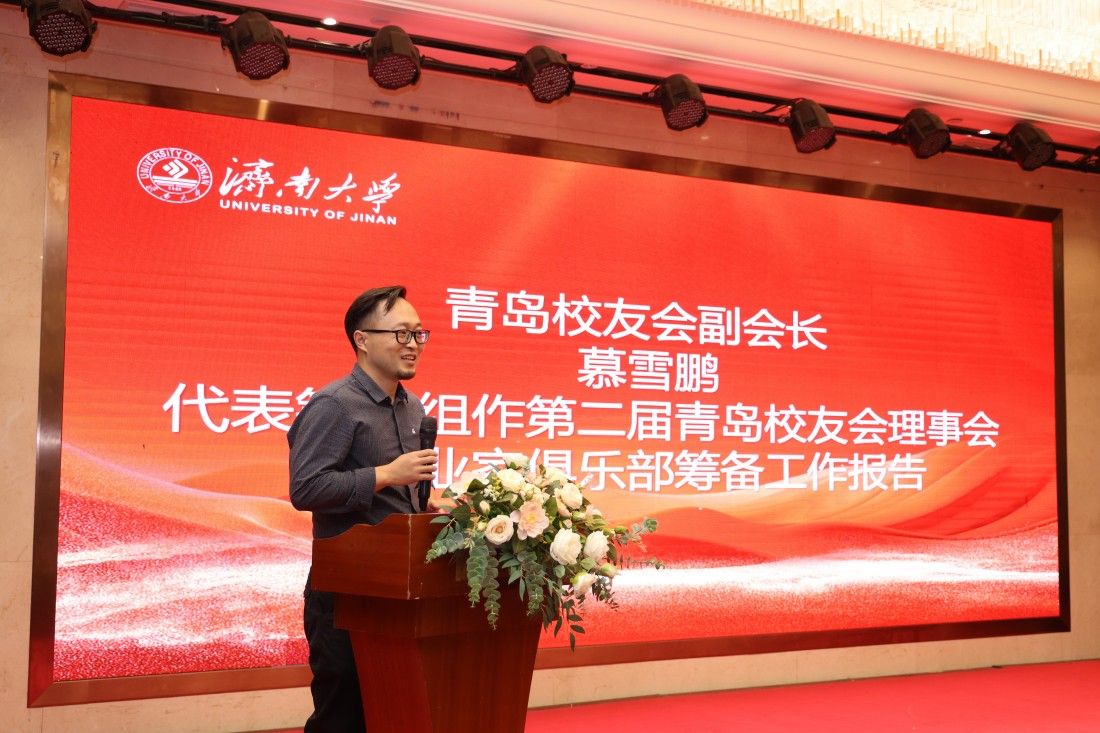 青岛校友会副会长慕雪鹏代表筹备组作第二届青岛校友会理事会暨企业家俱乐部筹备工作报告,期待校友们能够携手合作,为促进ac米兰官方网站与青岛校友之间的产学研合作作出新的更大贡献。