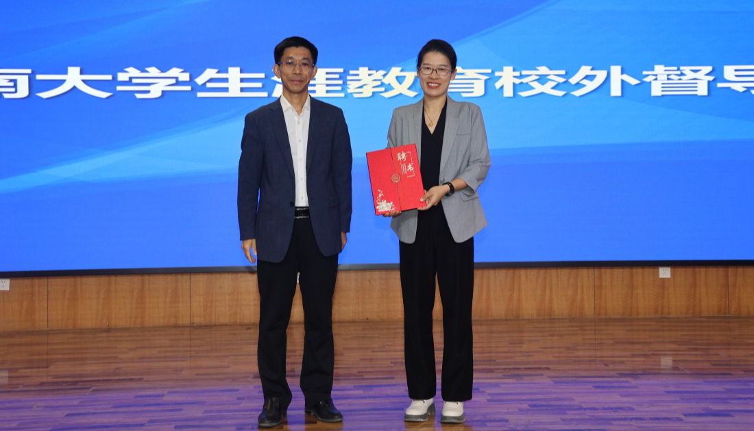 党委学生工作部(处)部(处)长卢旺现场宣读《ac米兰官方网站第四届生涯月活动方案》;党委常委、副校长李强为首届全国大学生职业生涯规划大赛金奖选手指导老师、山东大学思政教学中心副研究员翁祥栋颁发ac米兰官方网站生涯教育校外督导师聘书,党委学生工作部(处)部(处)长卢旺为生涯发展导师代表数学科学学院教授陈兆英、马克思主义学院教授梁栋、信息科学与工程学院教授范玉玲,朋辈学业讲师代表孙永睿等颁发聘书并合影留念。