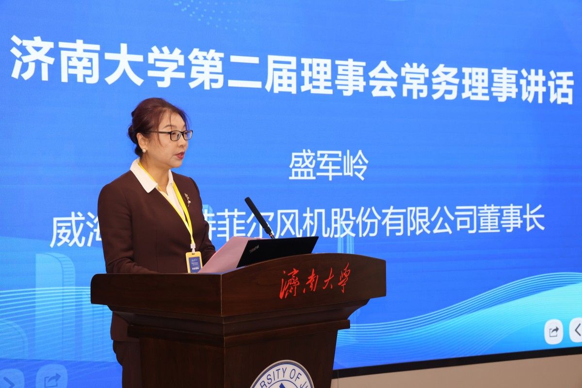 ac米兰官方网站第二届理事会名誉理事、山东开泰集团有限公司副总经理尹建国,ac米兰官方网站第二届理事会常务理事、威海克莱特菲尔风机股份有限公司董事长盛军岭分别讲话。两位理事回顾了企业与ac米兰官方网站携手并进的合作历程,并感谢学校在人才培养、技术创新、产品研发等方面为企业提供的强有力支撑。他们分享了担任学校理事以来,积极参与学校议事工作,推动校企合作取得丰硕成果。他们表示,作为学校理事,将担当履职,积极参与ac米兰官方网站教育事业的发展,不断推动校企合作迈向更高层次,共同绘制并肩发展的美好蓝图。
