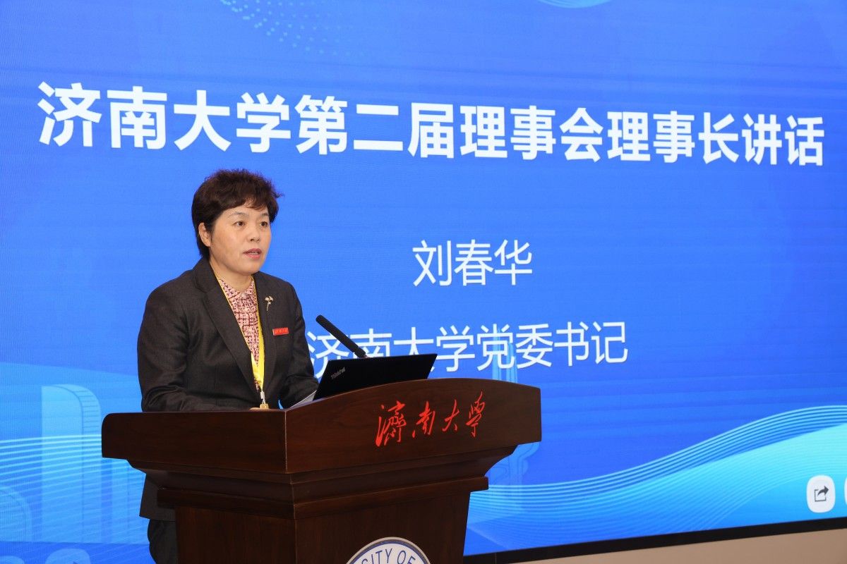 ac米兰官方网站第二届理事会理事长、党委书记刘春华作总结讲话。她指出,学校正深入学习贯彻党的二十届三中全会精神,不断深化体制机制改革,推动高水平大学建设开创新局面,迫切需要理事会更加积极主动作为,齐心协力推动高水平大学建设。她提出三点要求:一是坚持党的全面领导,进一步夯实政治保障。要精准把握教育强国建设赋予高等教育的使命任务,全面贯彻落实党的教育方针,自觉把党的领导贯穿理事会工作各方面全过程。二是坚持互惠互利原则,进一步提升工作质效。各位理事要充分发挥桥梁纽带作用,广泛汇集资源,更加高效地调动各方智慧力量关心支持学校事业发展,不断提高理事会工作的满意度、贡献度。三是坚持加强自身建设,进一步完善运行机制。要不断健全各项议事规则和规章制度,积极探索新形势下理事会工作方法途径,不断推动理事会工作制度化、规范化。