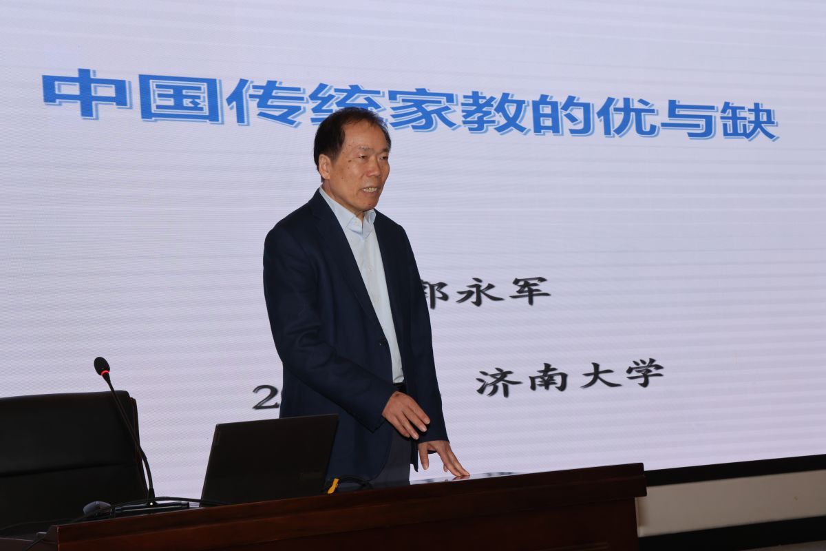 山东省政府参事,民进山东省委原专职副主委、一级巡视员郭永军以“中国传统家教的优与缺”为主题,在报告中分析了我国传统家庭教育的优势与欠缺,对传统家庭教育进行了现代解读和评价,指出了在新形势下如何到优秀传统文化中去汲取力量、寻求启示,在家庭教育领域推动优秀传统文化“双创”、促进我国家庭教育水平的普遍提升,为家庭教育的传承与发展提供了新的思路和方向。