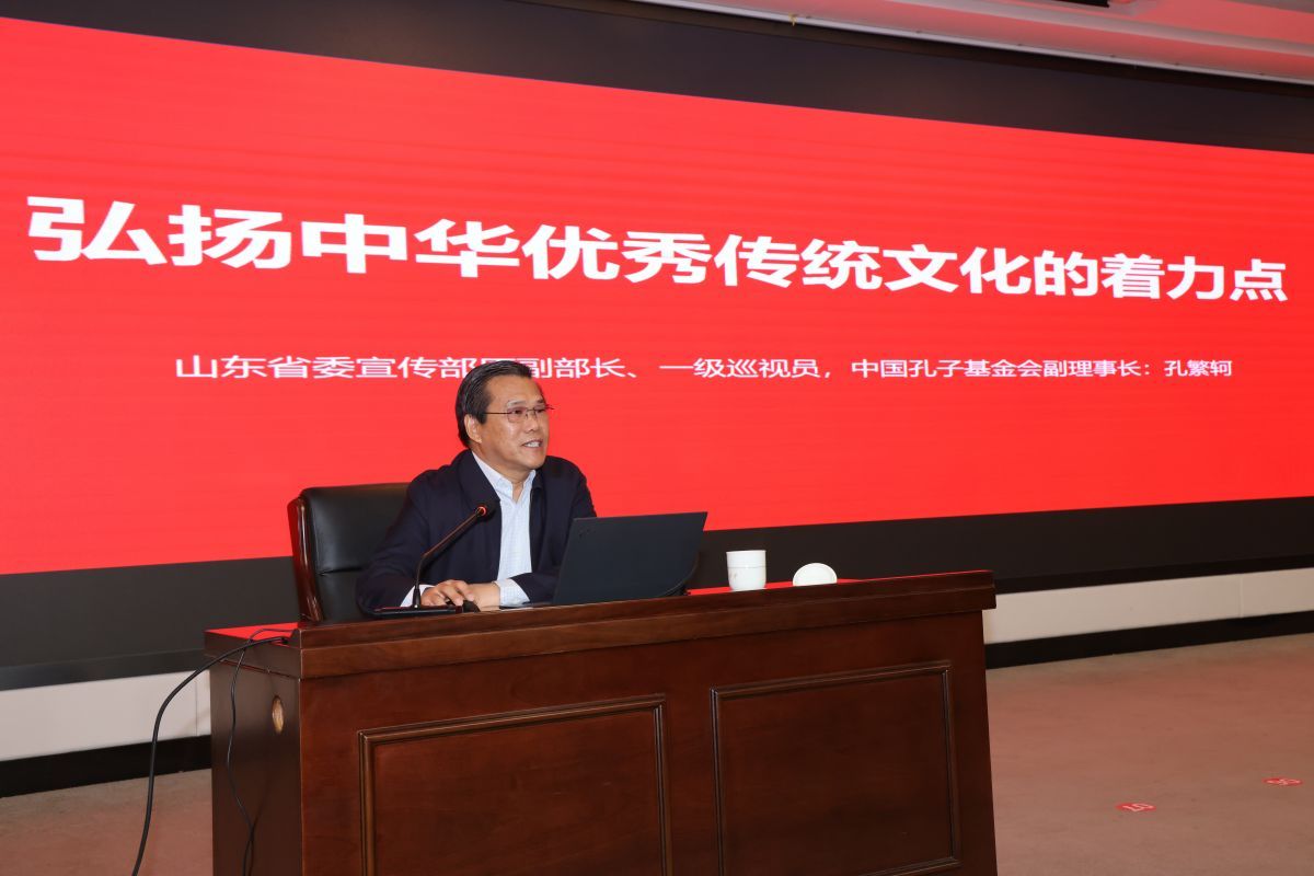 研讨会报告环节,多位专家、学者围绕“传承优良家教家风,弘扬优秀传统文化”主题进行了精彩的报告。中共山东省委宣传部原副部长、一级巡视员,中国孔子基金会副理事长孔繁轲以“弘扬中华优秀传统文化的着力点为主题,从“跟着习近平总书记学思想学方法、深入挖掘中华优秀传统文化的时代价值、正确处理六个方面的关系”三个主要方面进行了阐述,指出了今天我们传承中华优秀传统文化、弘扬优良家教家风的路径和方法,为与会者提供了宝贵的学术见解和指导。