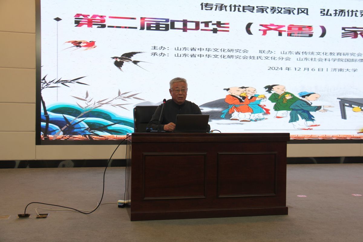 山东省中华文化研究会姓氏文化研究分会会长,山东省传统文化教育研究会党支部书记、常务副会长谢孟存代表活动主办方、联办方致辞。他在致辞中强调了家教家风在中华优秀传统文化中的核心地位,以及在新时代背景下传承和弘扬家教家风的积极意义。希望通过本次研讨会的深入研讨交流,激发更多关于家教家风的新思考、新见解,为推动我省乃至全国的家教家风建设贡献智慧和力量。