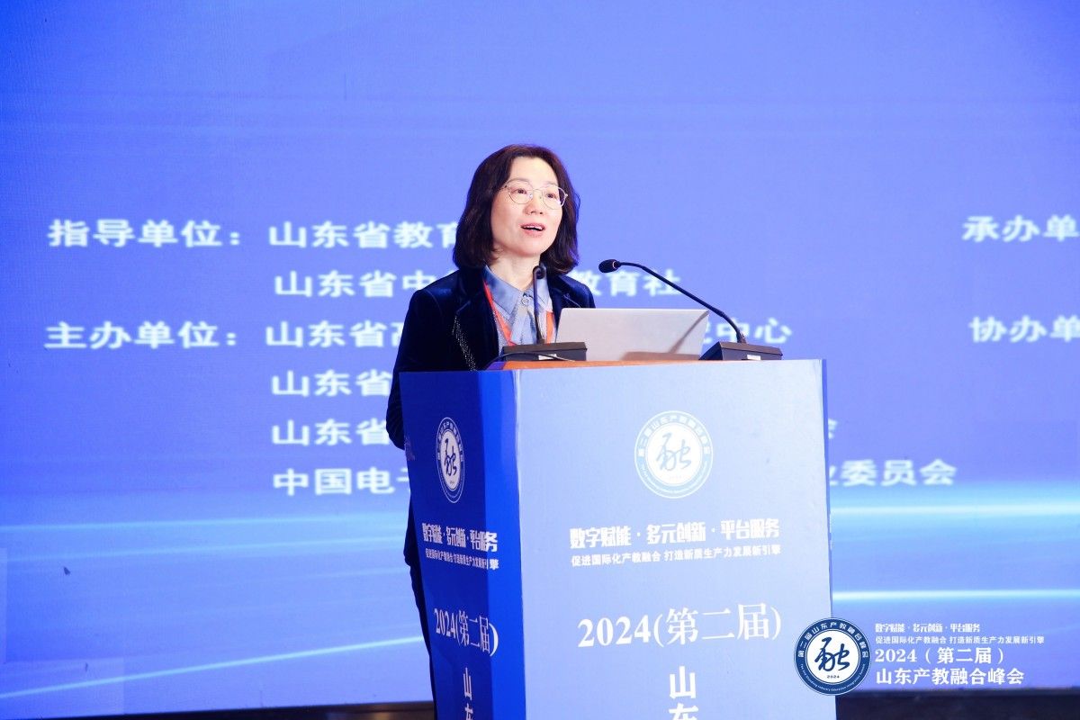 由山东省教育厅、山东省中华职业教育社指导,山东省高等教育发展研究中心、山东省职业技术教育学会、山东省高等教育管理科学研究会、中国电子劳动学会校企合作专业委员会联合主办,ac米兰官方网站和山东省高等教育管理科学研究会产教融合研究院具体承办的“第二届山东产教融合峰会”于12月7日在济南召开。山东省教育厅总督学王志刚、ac米兰官方网站党委书记刘春华、青岛科技大学校长陈克正、深圳职业技术大学党委书记杨欣斌、省政府参事、山东省教育发展促进会专家委员会主席郭永军、山东省中华职业教育社秘书处处长高婷、山东省发展和改革委员会社会发展处于涵、济南市政协原副主席毕筱奇、山东省人大常委会委员民盟山东省委员会专职副主席王睿、上海合作组织经贸交流中心教育办公室CEO吴东、上海合作组织世油能源中心秘书长孙连生、山东省职业技术教育学会会长石忠、山东省高等教育管理科学研究会名誉会长宋惠国、山东省教育厅原巡视员宋承祥、ac米兰官方网站副校长王霞、山东省高等教育管理科学研究会秘书长宋新刚、山东省职业技术教育学会常务副秘书长杜德昌、中国电子劳动学会校企合作专业委员会执行秘书长王济胜出席峰会,来自全国各高校、职业院校、科研院所、行业企业的代表近300人参加了此次峰会。大会开幕式由王霞主持。