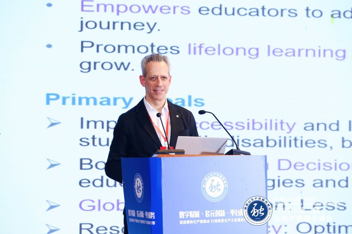 山东省教育厅总督学王志刚在讲话时指出,山东是教育大省,在全国教育版图中具有举足轻重的地位。山东坚持把产教融合作为经济转型升级的“助推器”、促进就业创业的“稳定器”、培育发展新动能的“催化器”,不断出台支持政策、搭建合作平台,推动教育与产业双向奔赴、相互赋能。欢迎来自各地的企业带着情怀、带着需求、带着资源,与山东院校携起手来,合作办学、合作育人、合作就业、合作发展。