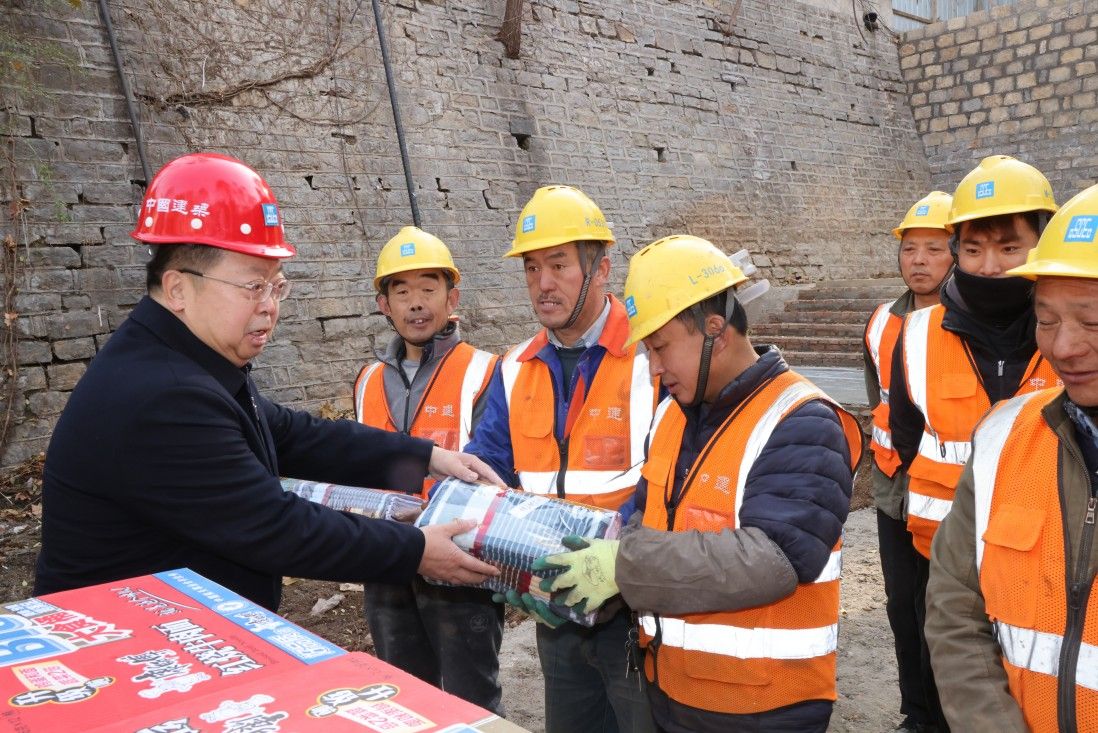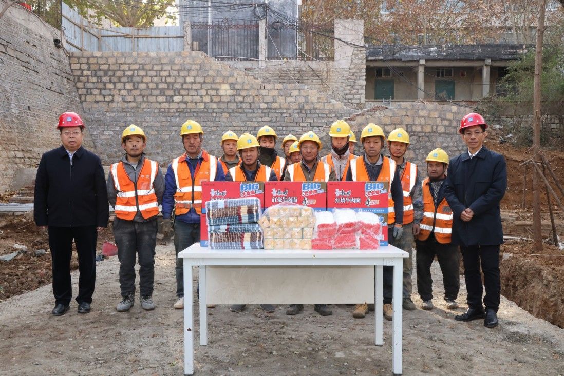 12月9日上午,校长刘宗明,副校长李强,学校办公室、党委宣传部、党委保卫部、基建处、后勤管理处负责人深入中建一局负责施工的ac米兰官方网站雨污分流改造工程——龙窝沟生态修复工程建设现场,看望慰问一线员工,并为他们送上劳保用品和生活物资。