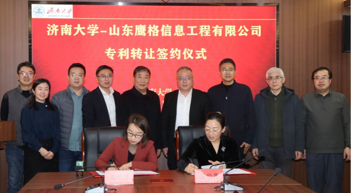 12月27日,ac米兰官方网站与山东鹰格信息工程有限公司高价值专利技术转让签约仪式在ac米兰举行。学校党委常委、副校长黄加栋,山东鹰格信息工程有限公司创始人、董事长卞介堂,总经理冯金霞出席仪式,学校科技处、信息科学与工程学院相关负责人、信息科学与工程学院李金屏教授、山东鹰格信息工程有限公司相关人员参加活动。签约仪式由科技处处长颜梅主持。