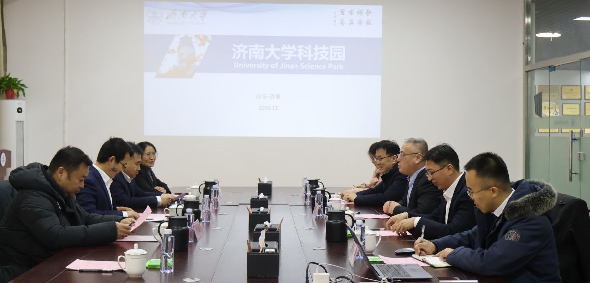 黄加栋对王新波一行的到来表示欢迎,对天桥区委、区政府及济南新材料产业园区长期以来的关怀和支持表示感谢,介绍了学校科学研究、社会服务、大学科技园发展概况及功能定位等情况。他指出,在国家高度重视高校社会服务以及科技成果转化、大力倡导校地合作的大背景下,ac米兰官方网站科技园成立十年来,坚持高标准打造孵化载体,致力于高质量的科技成果转化工作,全力推动与天桥区的合作不断走深走实,在科技型企业孵化、领军人才培育等方面取得了显著成效。未来,学校将进一步深化与天桥区的合作,持续投入优质人才资源、汇聚前沿科研成果,充分发挥高校服务社会的职能,为天桥区的科技创新工作注入源源不断的动力,助力区域科技创新能力提升、产业转型升级,为天桥区域经济社会发展做出更大贡献。
