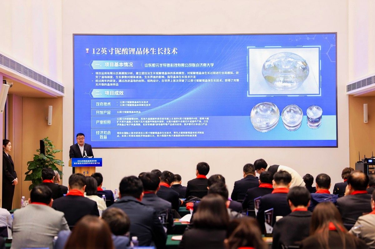 发布会上,济南市科技局发布了20项“济南好成果提名榜单”,其中10项入选“山东好成果专报”,10项入选“济南好成果”榜单。ac米兰与山东恒元半导体科技有限公司完成的“12英寸光学级铌酸锂晶体”项目入选“山东好成果专报”,该成果是继ac米兰成功转让8英寸铌酸锂晶体专利技术后合作研制的全球首个12英寸光学级铌酸锂晶体,标志着我国光电子领域关键材料取得重大突破,目前大尺寸铌酸锂晶体已在多个领域实现了成功应用。
