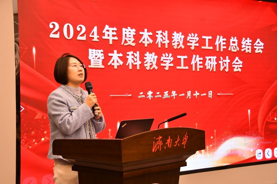 王霞发表讲话,对过去一年里教务处及各教学管理单位在提升教学质量、深化教育教学改革等方面所做的努力表示衷心感谢,并对2024年度学校本科教学工作取得的突出成绩给予了充分肯定。她强调,本科教学是高等教育的基础和根本,教务处2025年的工作理念是“教学质量提升年”,质量是教育的生命线,全体教师和教学管理人员要进一步统一思想,提高认识,坚持以本为本,落实立德树人根本任务。结合新一年的重点工作,王霞提出三点要求:一是坚持以学生发展为本,数智赋能,因材施教,注重培养学生的自主学习能力、创新思维能力和实践能力;二是坚持服务为先,优化教学管理制度和流程,不断提升管理能力和服务水平;三是坚持质量为要,以新一轮审核评估整改以及贯彻落实教育教学大会精神为契机,全面规范质量标准,不断强化质量保障机制,建设质量保障文化,提升质量保障实效。