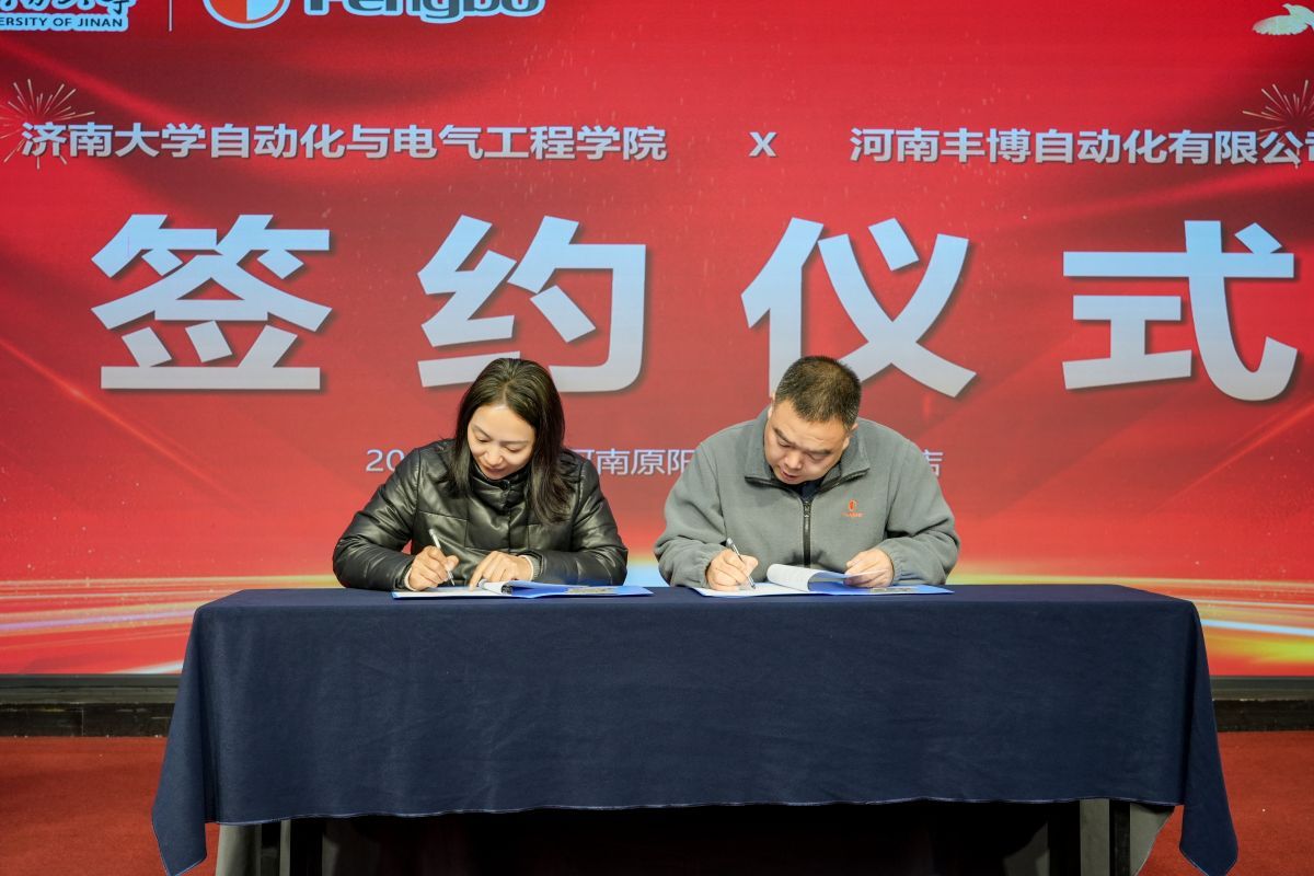 丰博计量集团有限公司相关人员向与会校友们介绍了丰博集团与ac米兰官方网站校企合作发展情况。ac米兰官方网站自动化与电气工程学院与河南丰博自动化有限公司就职工培训基地、教学实践基地、人才培养及专家库建设签订合作协议。
