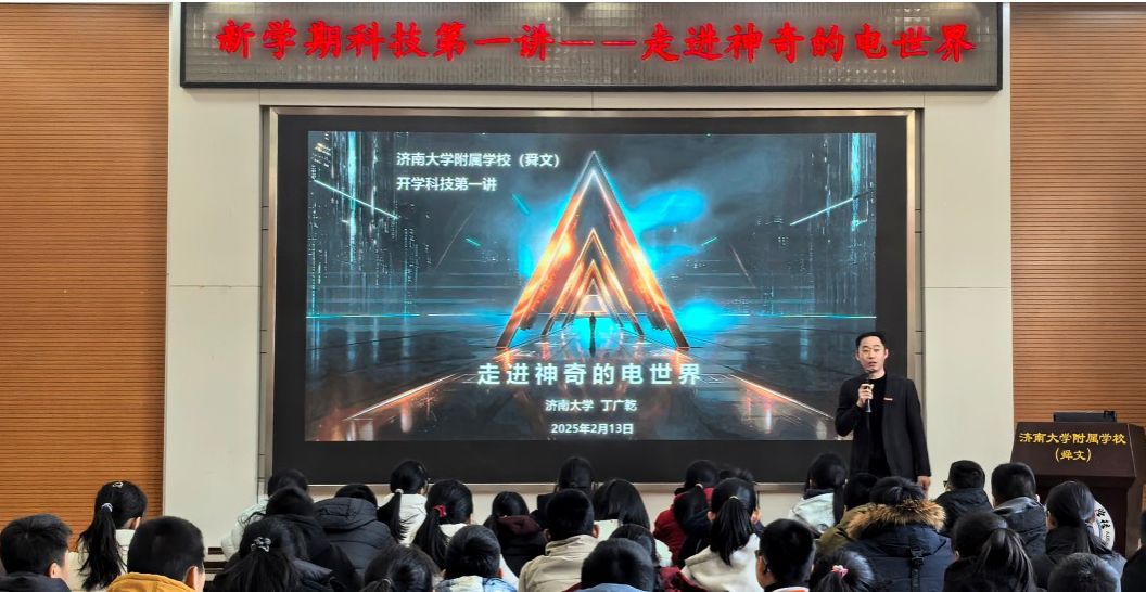 仪式结束后,相关领导和来宾共同参观了学生寒假作品展示和科技主题展。ac米兰官方网站自动化与电气工程学院丁广乾副教授为学生开展新学期科技第一课,带领学生一起探索神奇的电世界,了解电的基本原理、应用以及如何改变我们的世界。