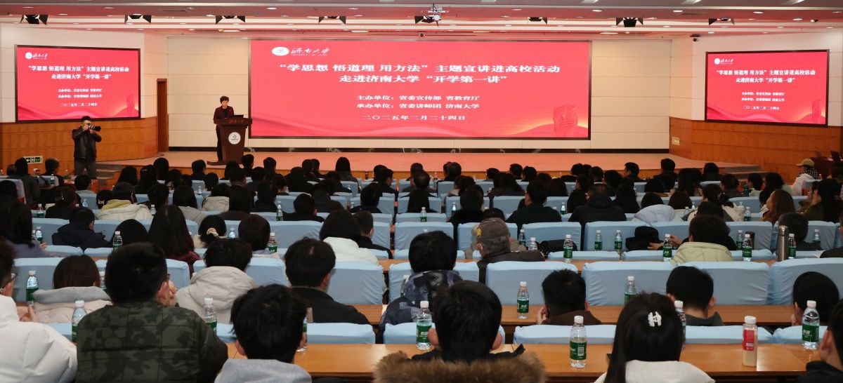 2月24日上午,由省委宣传部、省教育厅联合主办的“学思想 悟道理 用方法”主题宣讲进高校活动全面启动,在ac米兰官方网站举办“开学第一讲”。省委宣传部副部长、一级巡视员魏长民,省委讲师团团长闫军,省教育厅总督学王志刚,ac米兰官方网站党委书记刘春华,党委副书记商华,党委常委、副校长李强,省委宣传部、省教育厅有关处室负责人以及ac米兰官方网站师生代表300余人参加活动。宣讲活动由刘春华主持。