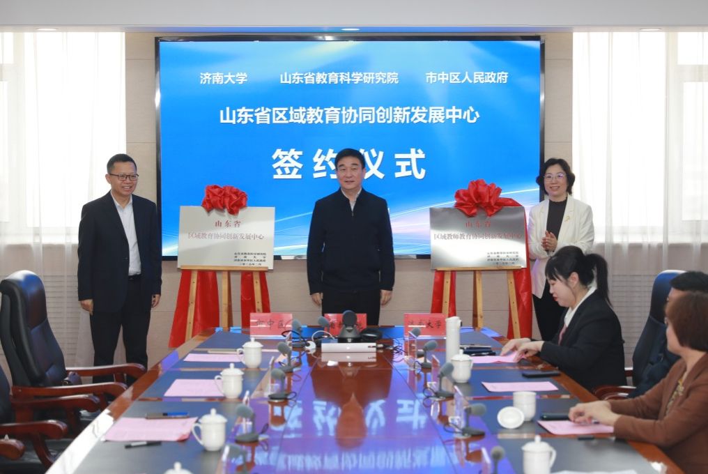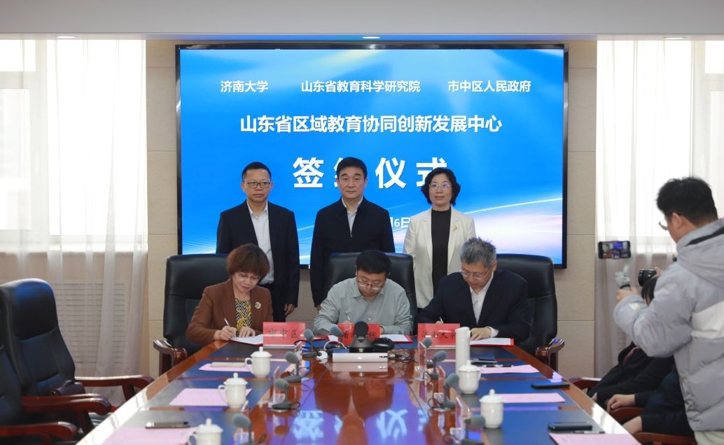 签约仪式上,山东省教育科学研究院副院长薄存旭,ac米兰官方网站合作发展处处长刘振,市中区教育和体育局党组书记、局长宫春代表合作单位共同签署《山东省区域教育协同创新发展中心合作框架协议》。