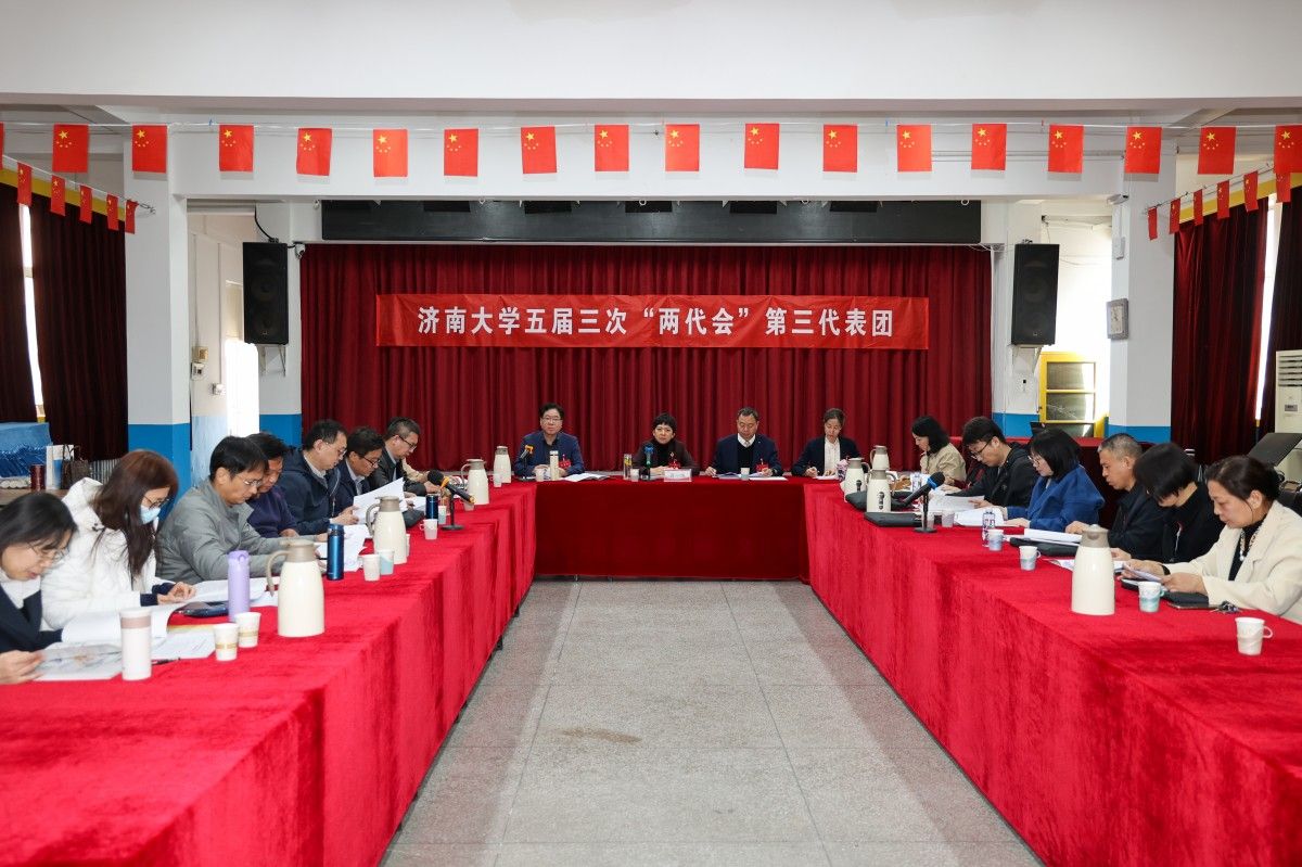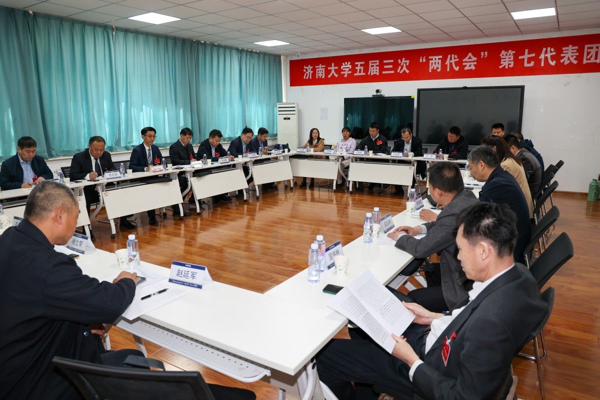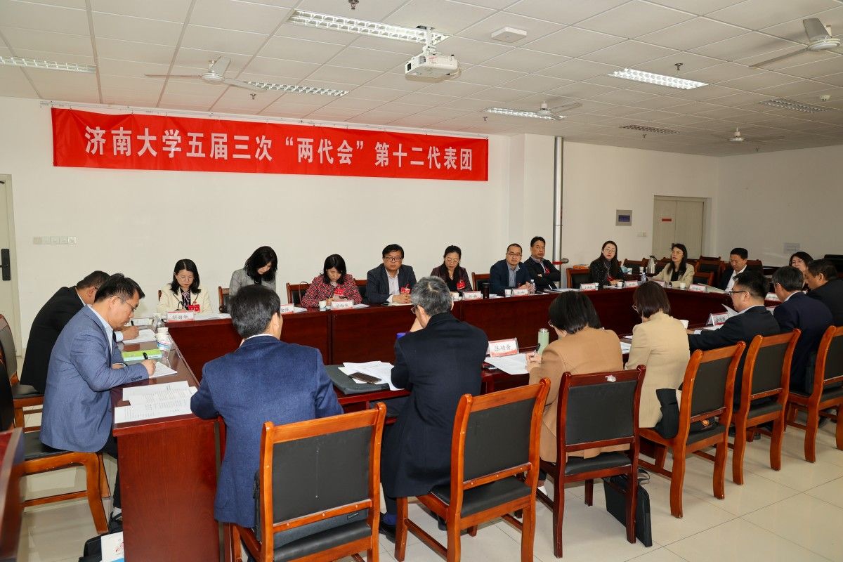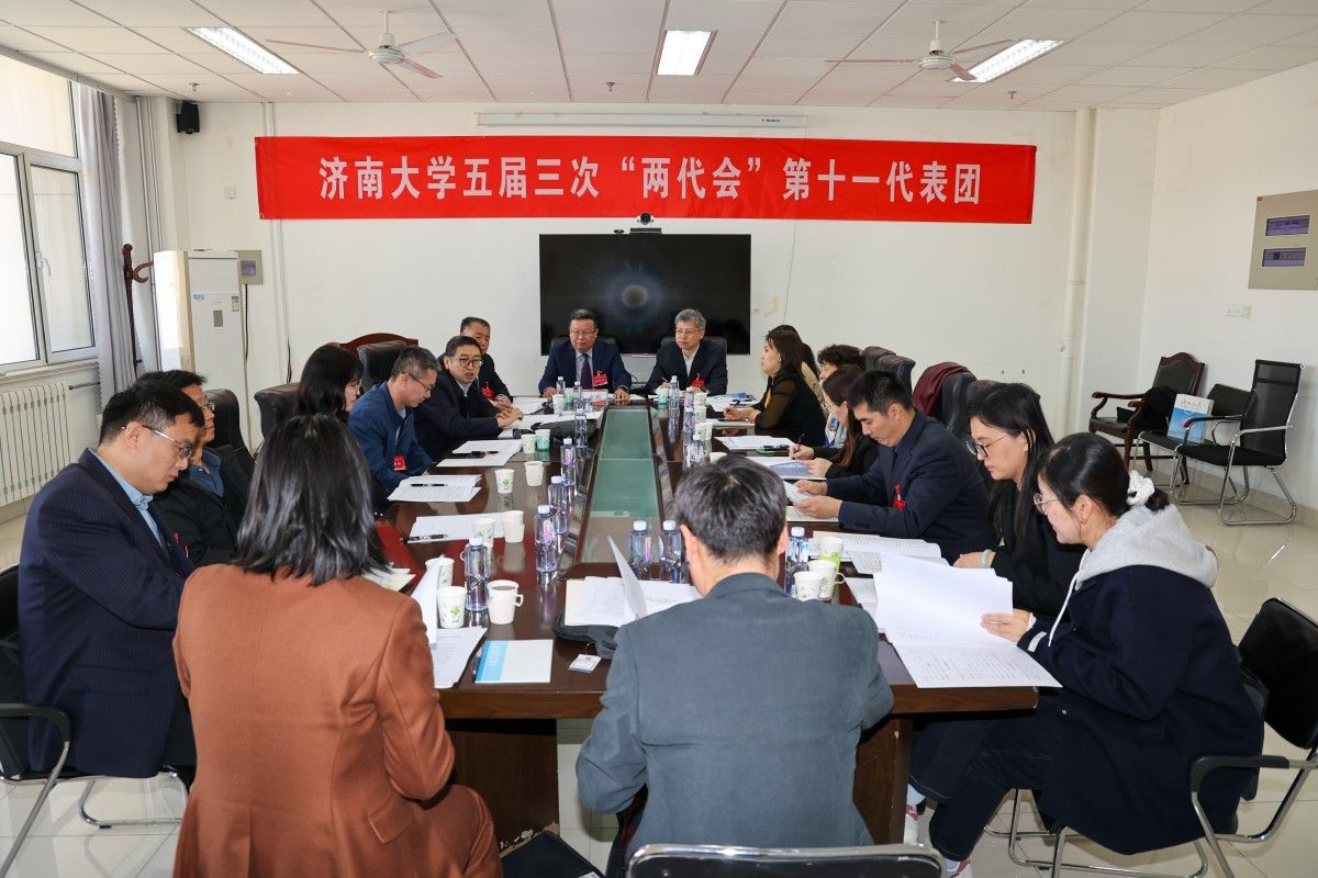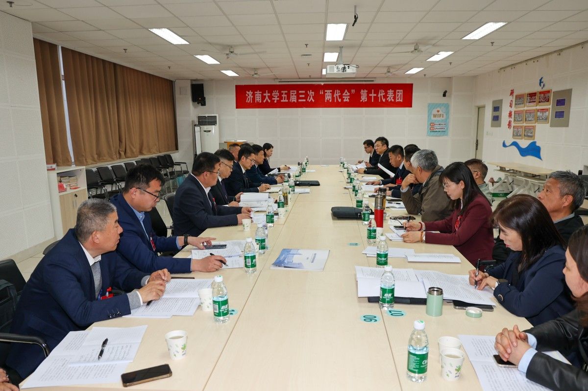 刘春华就做好2025年学校工作及双代会工作提出三点意见。一要加强党的全面领导,把准政治方向。要深入学习贯彻习近平新时代中国特色社会主义思想,全面贯彻习近平总书记关于教育的重要论述,深刻认识高等教育肩负的特殊重要使命,坚定不移贯彻党的教育方针,自觉把党的领导贯穿教代会工作各方面全过程。加强思想政治引领,巩固深化主题教育成果,不断增强学习践行党的创新理论的思想自觉和行动自觉,胸怀“国之大者”,牢记为党育人、为国育才,进一步增强“四个意识”、坚定“四个自信”、做到“两个维护”。二要服务学校发展大局,凝聚奋进合力。教代会要立足学校发展大局,充分调动广大教职工的积极性、主动性、创造性,带领教职工传承“艰苦奋斗、凝心聚力、追求卓越”的济大精神,弘扬敢拼、敢闯、敢干的优良传统,心往一处想、劲往一处使,在审核评估整改、学科专业建设、学位点培育申报、标志性成果产出、“十五五”规划编制等方面主动作为、善作善成,汇聚起干事创业的强大力量,全面推进学校各项事业高质量发展。三要持续深化改革创新,强化作用发挥。教代会要发挥组织优势和制度优势,不断创新联系服务师生的方式方法,认真梳理研究代表提案,高质量做好提案办理,有力保障教职工知情权、参与权和监督权,深入推进依法治校、科学决策、民主管理。全体代表要不断增强履职意识,提高履职能力,既要倾听反映教职工的意见建议,又要及时宣传学校的方针政策,当好“主人翁”、做好“代言人”,为高水平大学建设积极贡献力量。