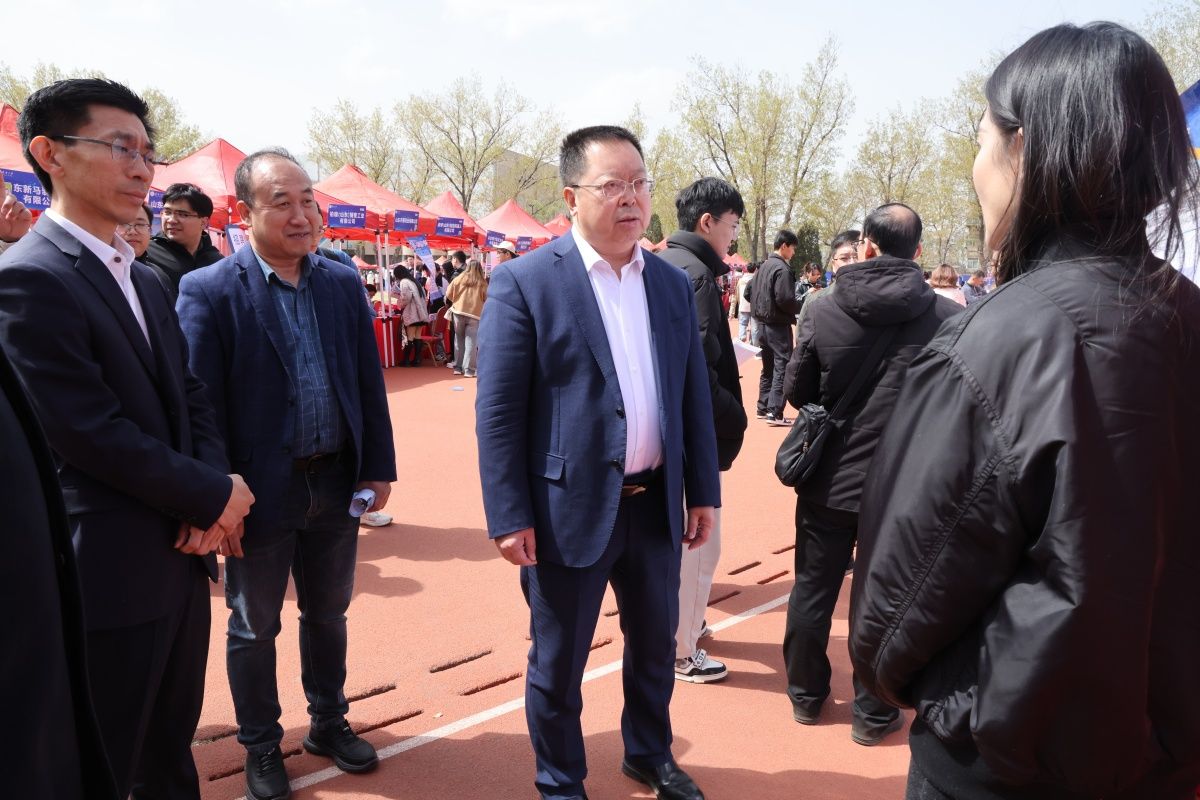 3月28日上午,ac米兰官方网站2025届毕业生春季大型双选会在学校体育场举办。学校党委书记刘春华,党委副书记、校长刘宗明,党委副书记张庆国,党委常委、副校长李强,学校办公室、党委学生工作部(处)、党委保卫部、党委研究生工作部、团委等部门负责人及各学院党委副书记和毕业班辅导员参加,并在展位前与单位招聘人员以及求职毕业生进行了深入交流,了解用人单位人才需求基本情况、毕业生综合素质等相关看法。