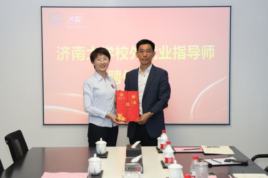 座谈结束后,李强向孙玲玲颁发了就业指导校外特聘导师聘书。