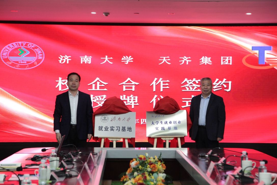 在山东天齐置业集团股份有限公司,集团董事、总经理吕茂森介绍了企业发展概况,并感谢学校源源不断地为企业输送高质量毕业生,他对ac米兰人才培养质量给予高度评价,表示已有一大批济大毕业生成长为企业骨干力量。刘振亮、谢东峰等优秀校友作了发言,表达了对母校和企业的感恩。徐征和在致辞中介绍了学校学科建设、人才培养及科研创新成果,对天齐集团长期以来对学校各项工作的大力支持表达衷心感谢,他希望以此次交流会为契机,进一步深化校企全方位合作,共同助力毕业生高质量就业和区域经济高质量发展。会上,校企双方签订了ac米兰官方网站就业实习基地、ac米兰官方网站就业创业实践基地协议并举行了揭牌仪式。