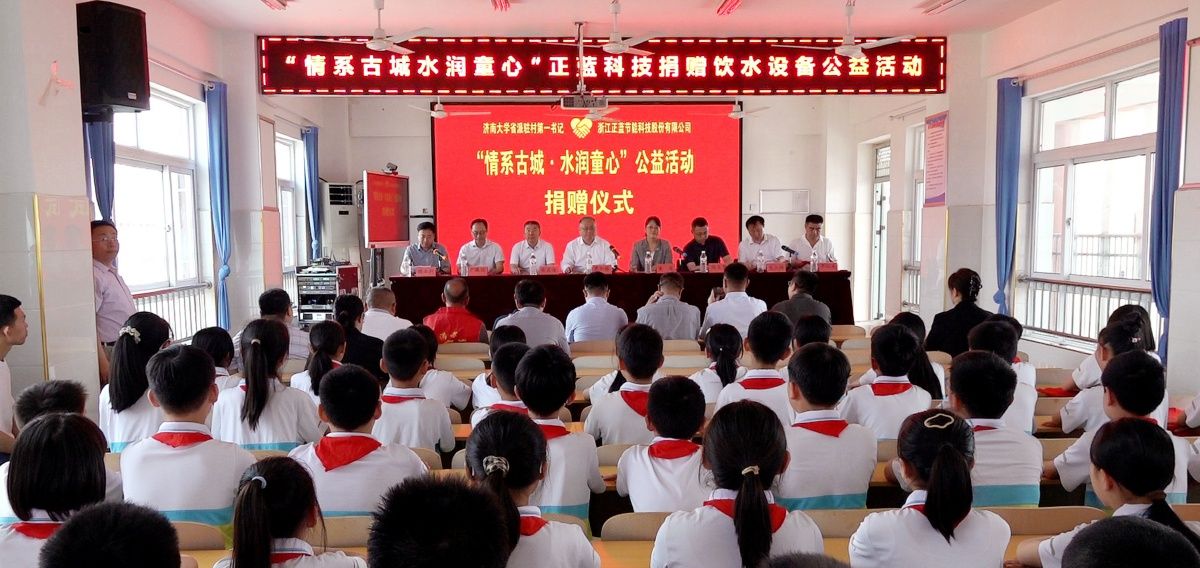 张玉贺代表浙江正蓝节能科技股份有限公司向古城镇小学、幼儿园捐赠了价值10万元的饮水设备。他在讲话中承诺,浙江正蓝节能科技股份有限公司将持续践行社会责任,助力乡村振兴。据悉,此次捐赠的饮水设备将覆盖古城镇2所小学和1所幼儿园,惠及千余名师生。